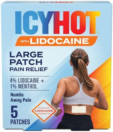 - Los parches de alivio del dolor Icy Hot con Lidocaína y Mentol proporcionan un alivio rápido que puedes usar hasta por 12 horas