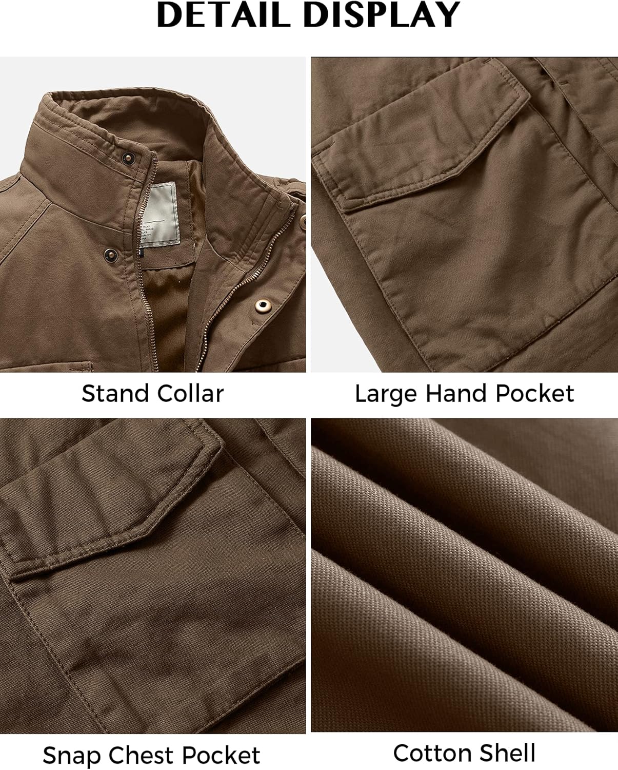 WenVen Men's Lightweight Military Style Jacket Twill Cotton Windbreaker