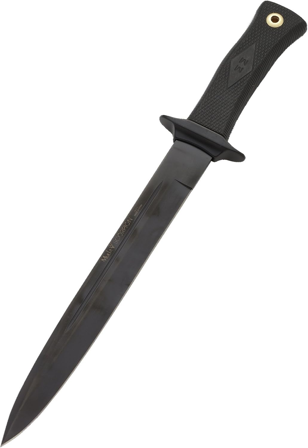 MUELA SCORPION-26N: hunting knife, fixed blade, 10-3/4 inch blade, Teflon coated finish, polymer handle, leather sheath, boxed