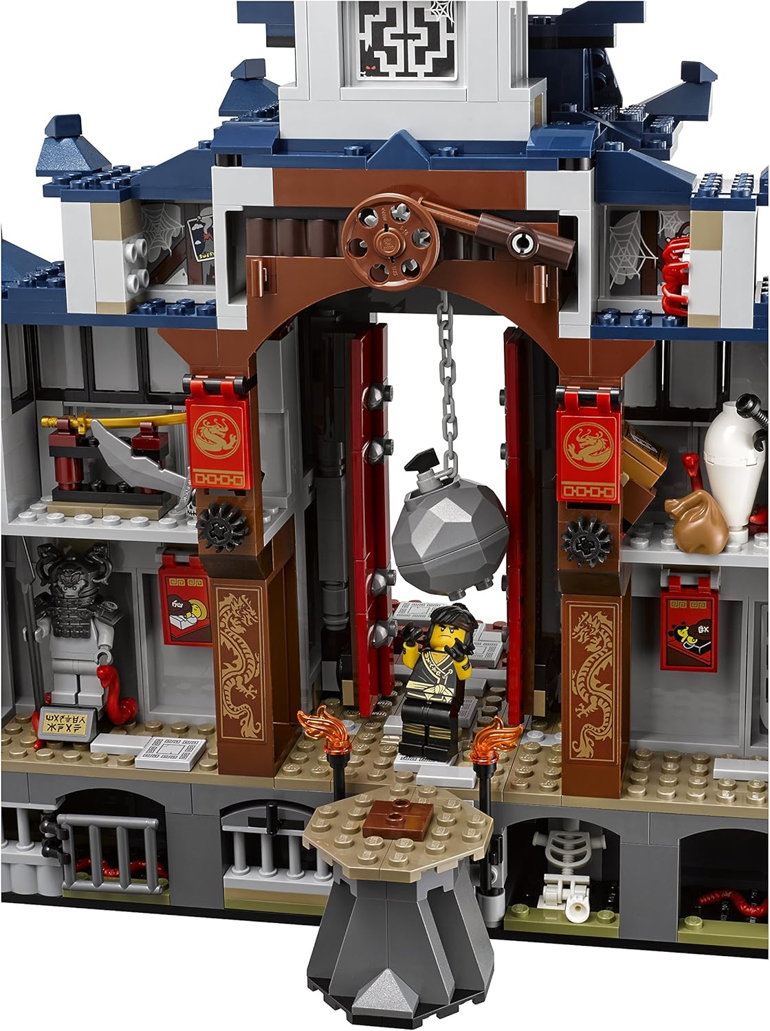 Únete a una misión ninja para infiltrarte en EL TEMPLO DE LA ARMA Ultimate de LA PELICULA LEGO NINJAGO. El templo cuenta con una entrada secreta, función de trampilla, caída de rocas y dinamita, trampas de lanzas y espadas de corte, mazmorra, una jaula colgante para capturar una minifigura dentro, y una sección extraíble con postes para que los minifiguras salten entre ellos para alcanzar la caja del tesoro. Este set incluye 7 minifiguras con armas variadas y 2 figuras construibles de guardianes del templo para diversión sin fin en el juego de roles.