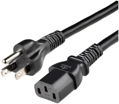 Cable de alimentación para PC Amazon Basics, 6 pies, Cable de alimentación AC para monitor, computadora, TV, 3 patas, 18 AWG, 125 voltios, negro