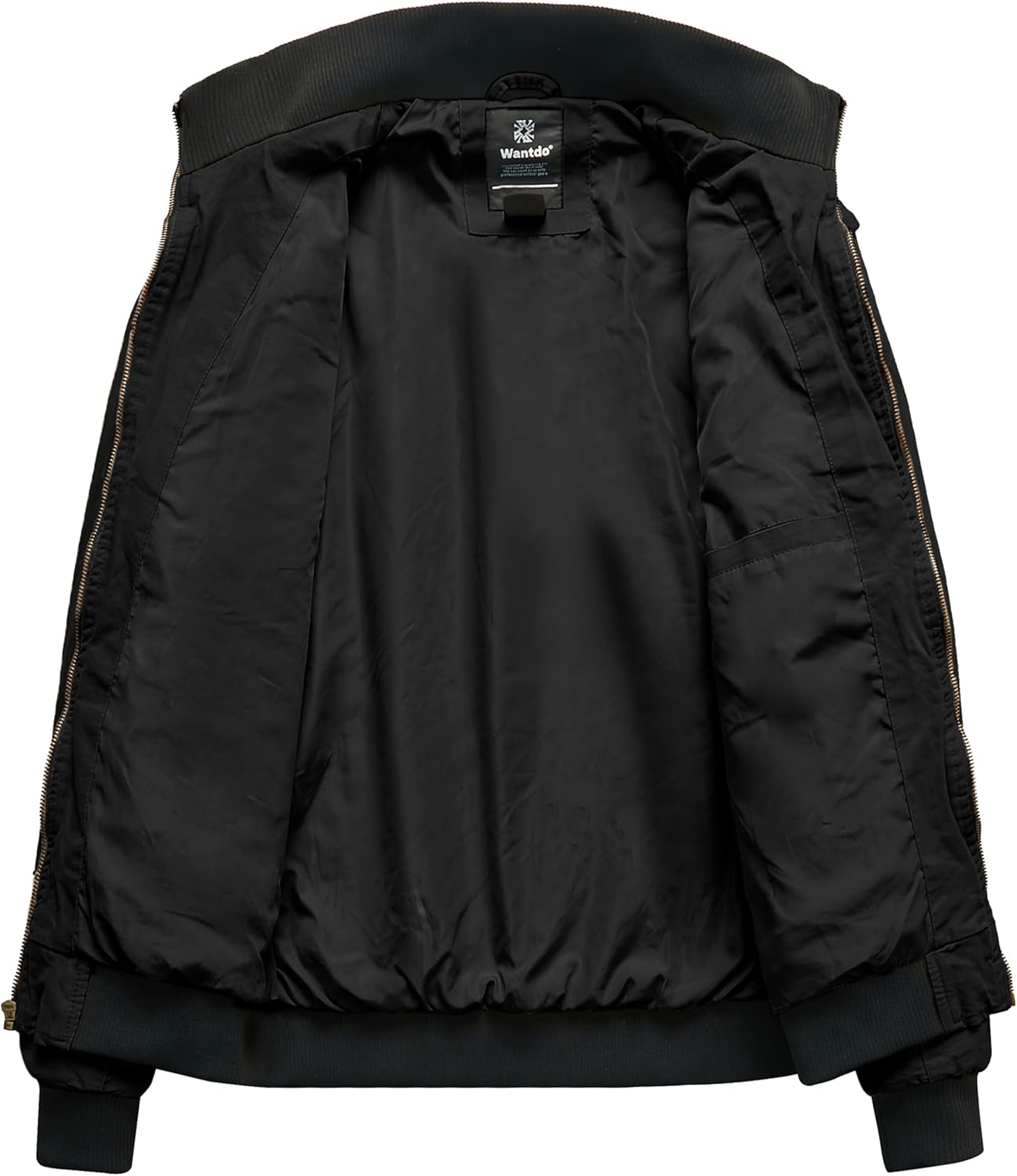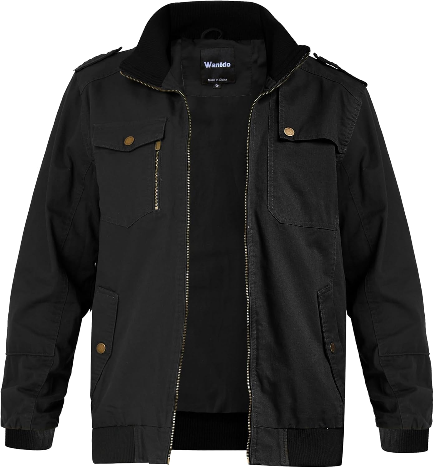 Wantdo Men's Military Jacket Casual Bomber Jacket Stand Collar Canvas Jacket Windbreaker