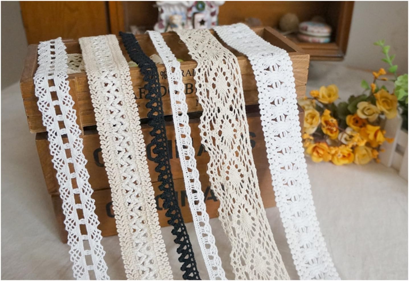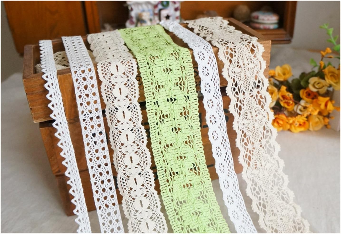 The material of this assorted lace ribbon is 100% cotton.