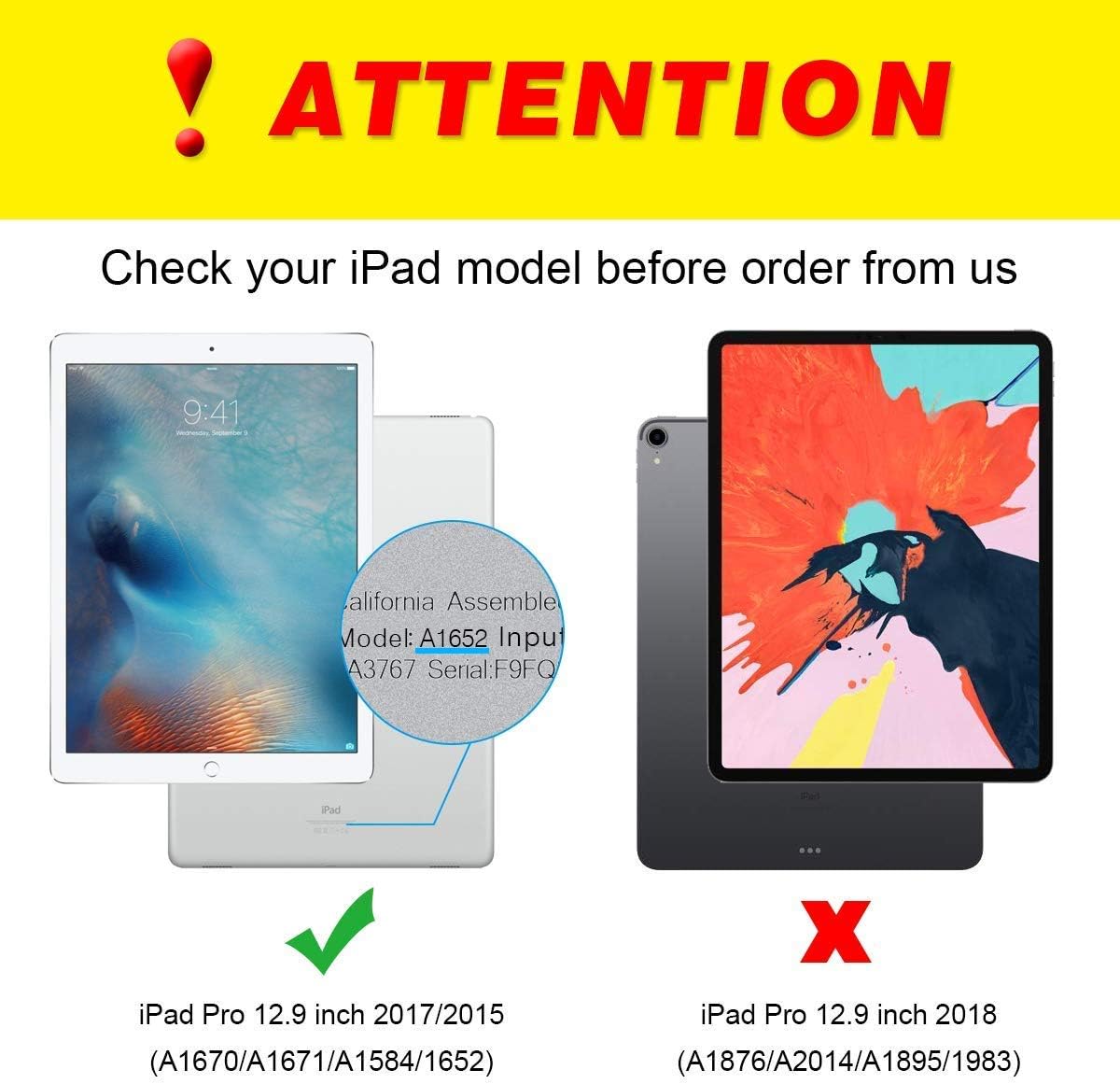 【 Gran Compatibilidad 】 Compatible tanto con Apple iPad Pro 12.9 pulgadas Edición 2017 [A1670 / A1671] como con iPad Pro 12.9 pulgadas Edición 2015 [A1584 / A1652] (No incluye Apple Pencil y dispositivo iPad). ***** No compatible con ningún otro modelo de iPad.