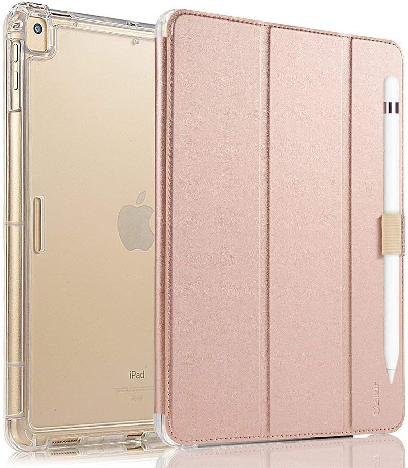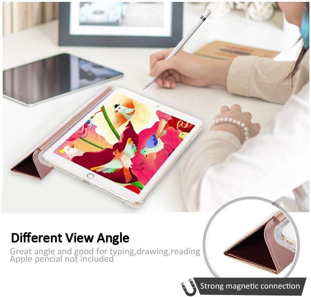 Funda para iPad Pro 12.9 2017/2015 (Modelo Antiguo, 1ª y 2ª Gen) - Funda para iPad Pro 12.9 Pulgadas con Soporte Inteligente para Lápiz Smart Folio y Protección con Parte Trasera Translúcida y Frosted, Auto Wake/Sleep, Oro Rosa