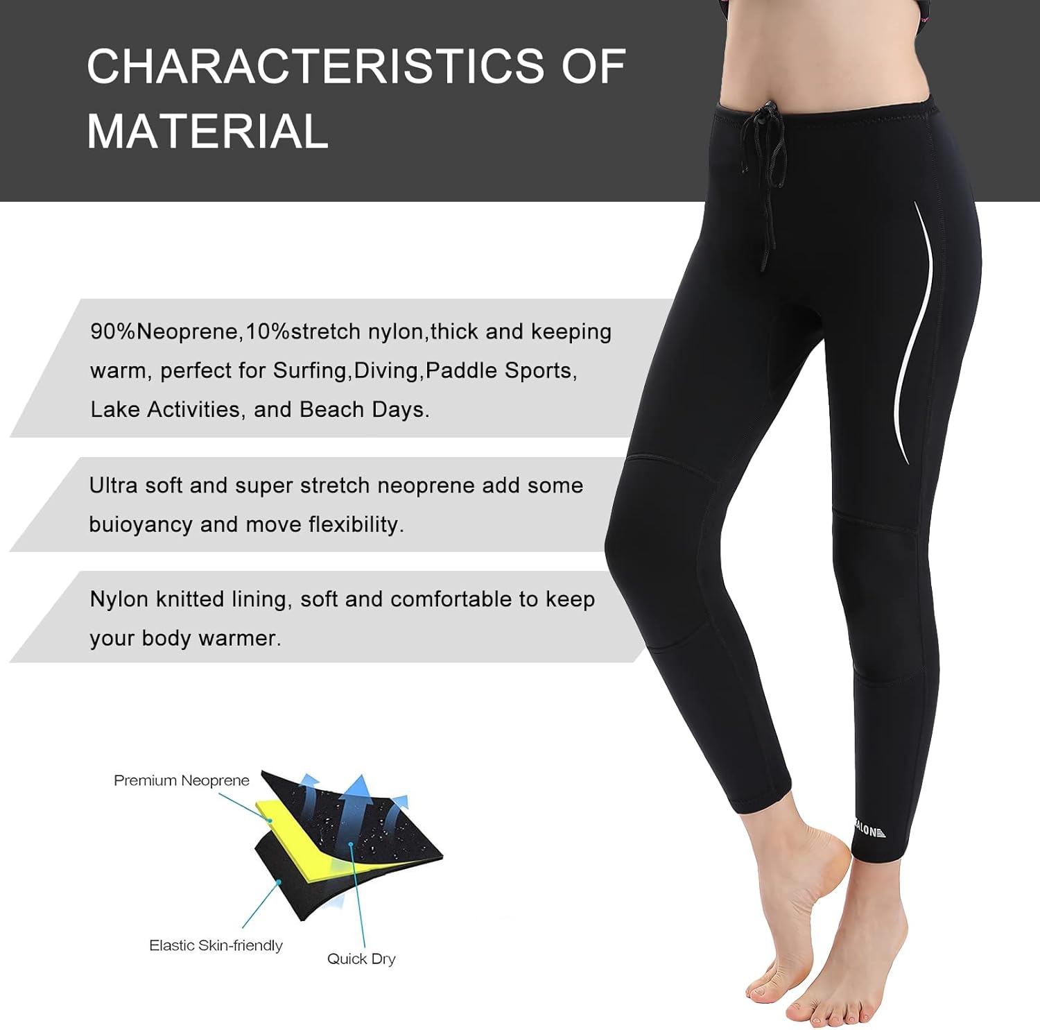 USAGE SCENARIO: Womens mens wetsuit pants are great for surfing diving snorkeling swimming workout canoeing and other water sport,wet suit pants giving a more natural feeling of buoyancy,let you feel at ease and enjoy your time under sunshine