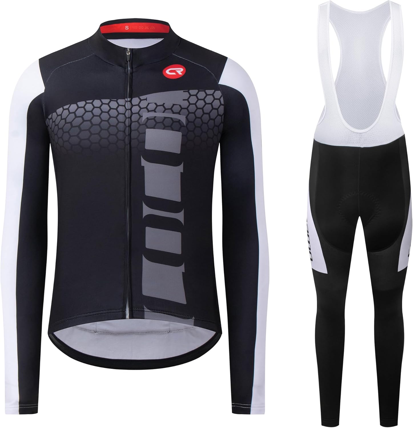 Coconut Ropamo CR Men's Cycling Clothing Set Long Sleeve Cycling Jersey Zipper Pocket Bike Outfit Cycling Bib Pants 3D Padded