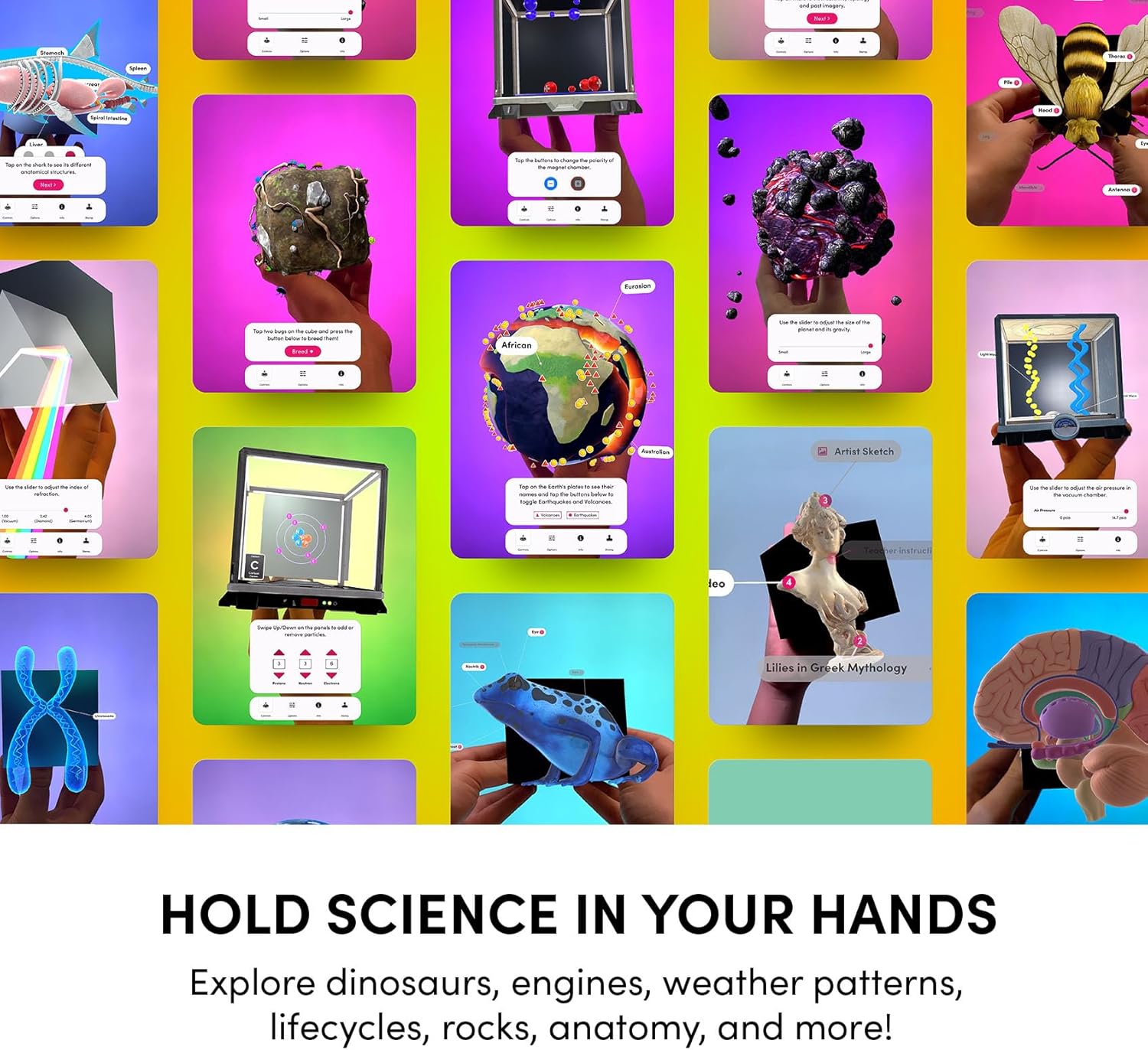MERGE CUBE HERRAMIENTA DE REALIDAD AUMENTADA STEM PARA AYUDA DIDÁCTICA PRÁCTICA Y SIMULACIONES - El juguete Merge Cube de Realidad Aumentada STEM incluye más de 1.000 ayudas didácticas digitales 3D fieles a la vida real y más de 100 simulaciones STEM y científicas que los estudiantes pueden inspeccionar e interactuar con ellas como si fueran modelos físicos reales. Rocas y minerales, dinosaurios, motores, anatomía humana, ciclos de vida, planetas, disecciones de ranas y más. Ciencias Físicas, Ciencias de la Vida, Ciencias de la Tierra y del Espacio, e Ingeniería.