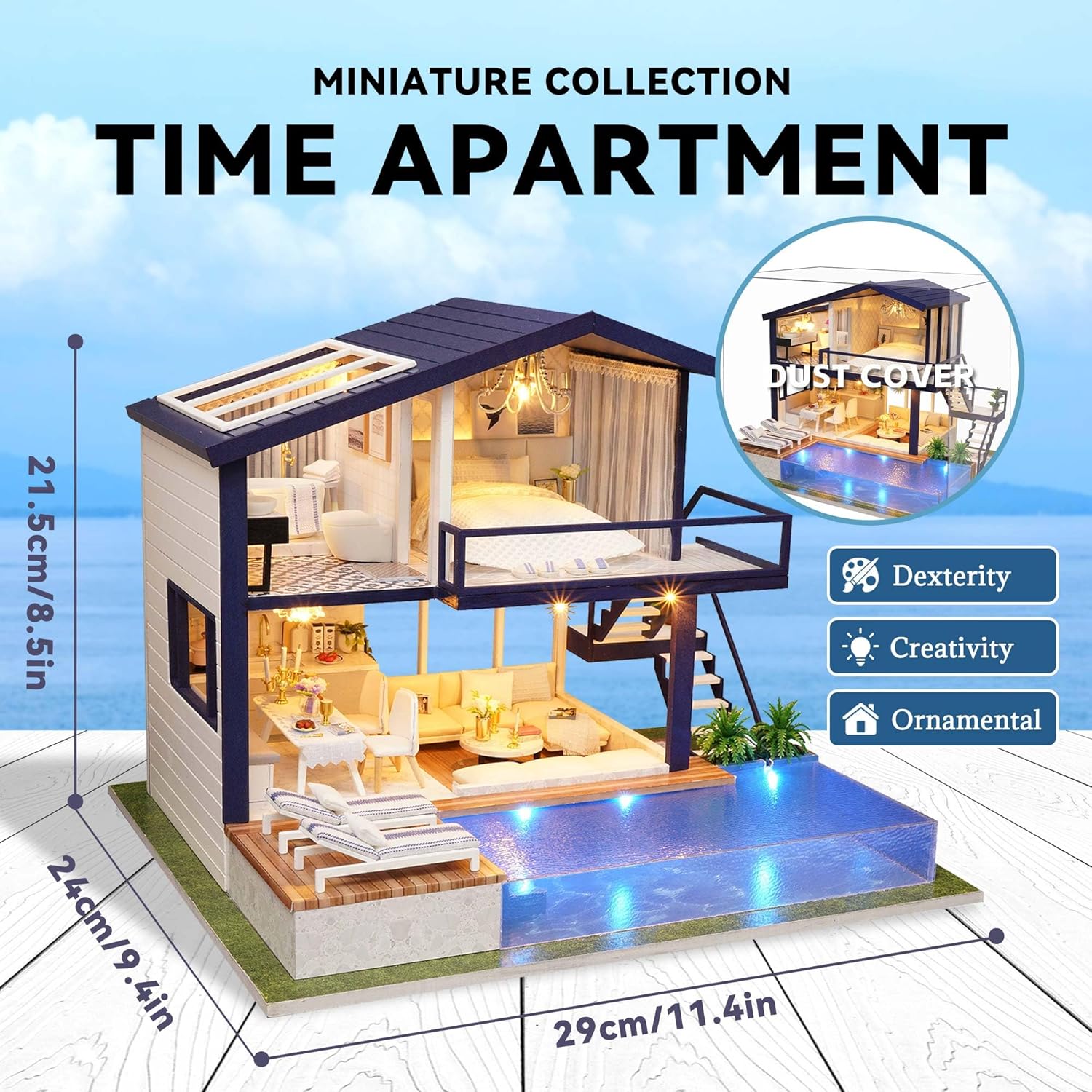 Kit de casa de muñecas Flever en miniatura para bricolaje, manual creativo con muebles para regalo de obras de arte románticas (apartamento perfecto para el momento)