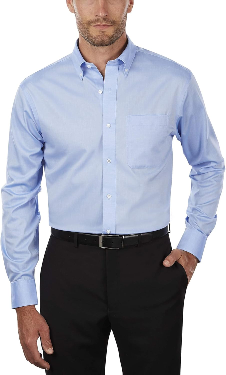 Tommy Hilfiger Hombre Manga Larga de Algodón Regular Fit Sin Planchar con Botón Solido en el Cuello