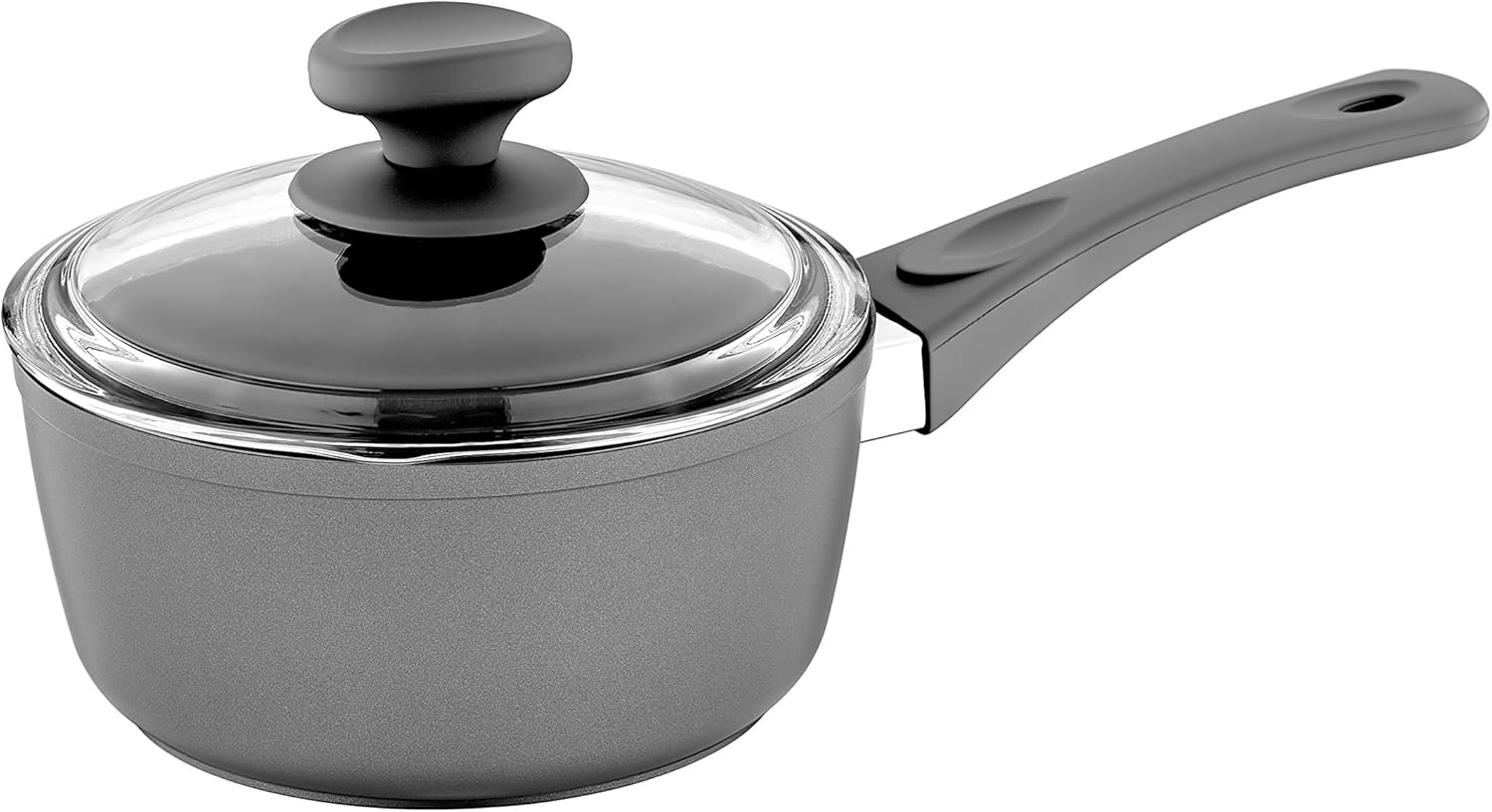 Saflon Titanium Nonstick 2 Quart Sauce Pan with Glass Lid Forged Aluminum with PFOA Free Coating