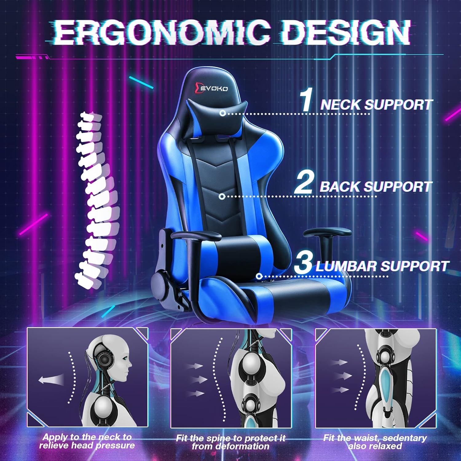 Devoko Ergonomic Gaming Chair Racing Style Adjustable Height High Back PC Computer Chair with Headrest and Lumbar Support Executive Office Chair (Blue)