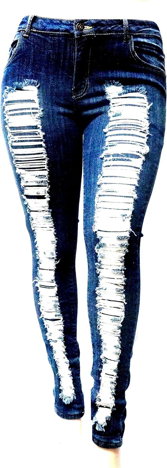 Jack David 1826 Womens Plus Size Stretchy Ripped Denim Jeans Skinny Leg Pants