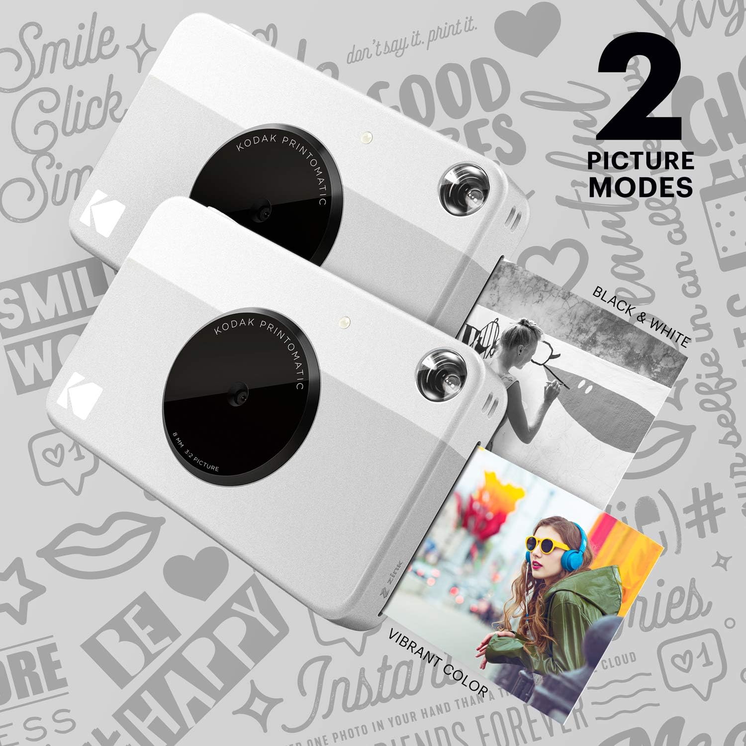 Olvídate de las computadoras. Olvídate de las impresoras engorrosas. La cámara Kodak Printomatic imprime automáticamente fotos a prueba de manchas, resistentes al agua y al desgarre de hasta 10 MP. Solo apunta, dispara e imprime. Perfecta para llevar en el camino, cuando quieras compartir impresiones, la Kodak Printomatic es la forma más fácil y divertida de compartir fotos con amigos. Tus impresiones son incluso adhesivas, así que puedes ser creativo y usar las fotos para decorar, como lo harías con cualquier adhesivo. La velocidad de la cámara te permite seguir disparando mientras tu foto está imprimiendo. La tecnología sin tinta de la cámara significa que no tienes que preocuparte por los cartuchos de impresión, la película o el tóner sucios. Disfruta de un flash incorporado y dos modos de imagen, tanto en color como en blanco y negro. Añade una correa para el cuello para un manejo fácil y utiliza la ranura Micro SD para memoria adicional.