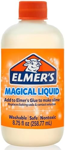 Want to make slime without the hassle? Just mix Elmer's Magical Liquid with Elmer's Glue to make multiple batches of perfectly gooey slime every time! It’s the easy way to make glue slime at home with less mess and your ticket to family-friendly fun. Featuring an all-in-one formulation that has a washable, safe, and nontoxic formula, this solution transforms most Elmer’s glue into slime without the need of contact lens solution and baking soda. Plus, this updated, stronger formula makes twice as much slime compared to the prior formula.