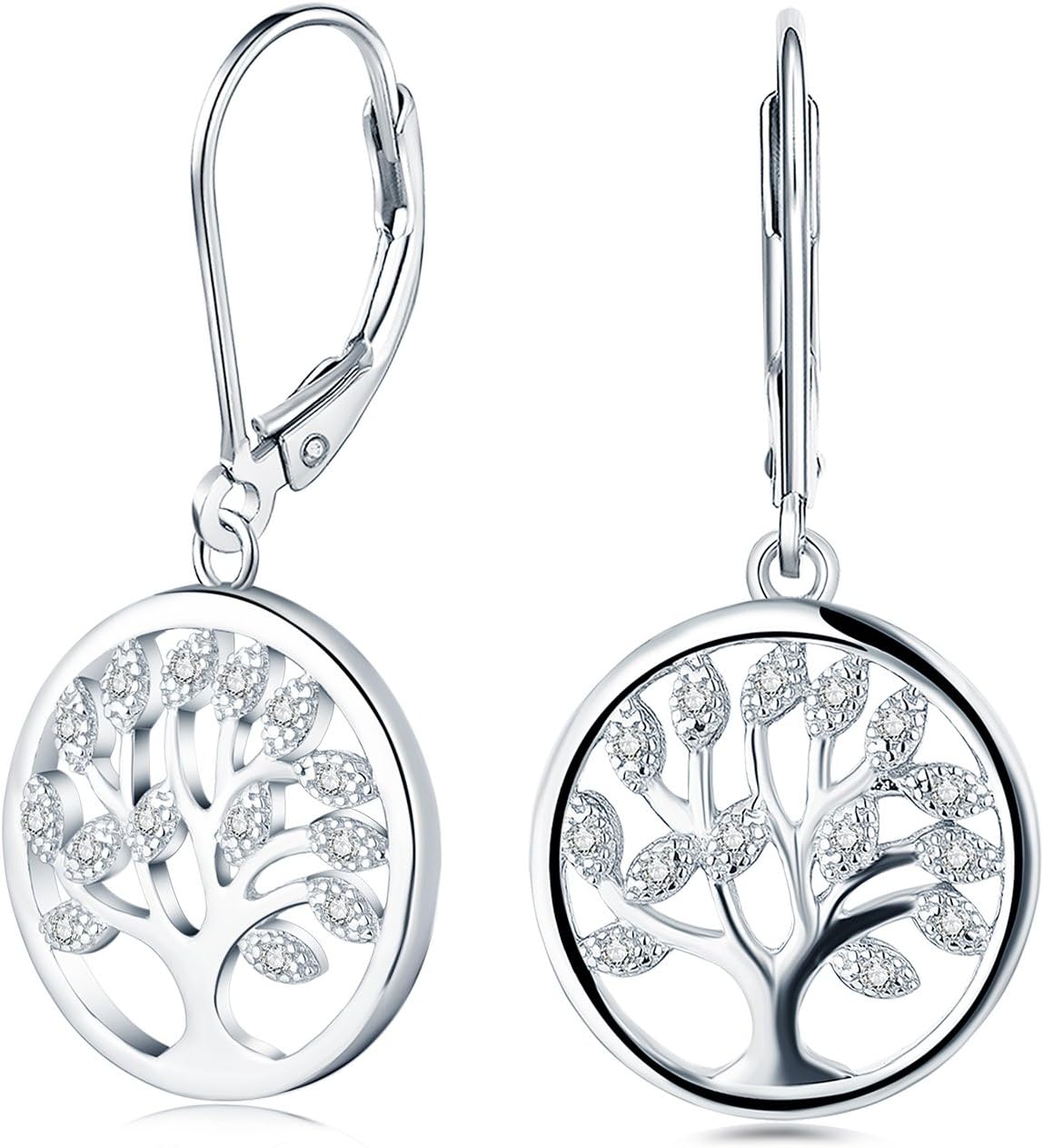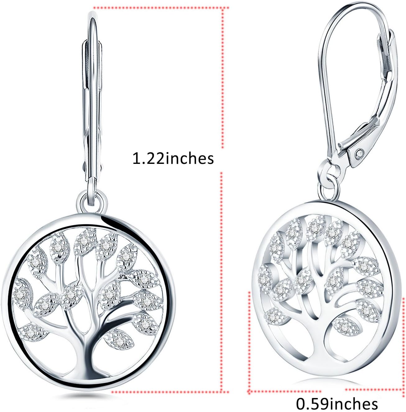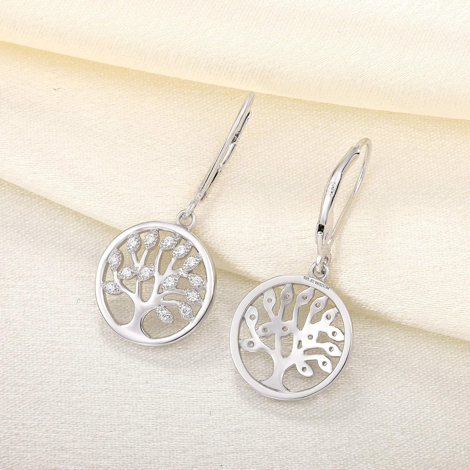 JO WISDOM 925 Sterling Silver Cubic Zirconia Tree of Life Earrings