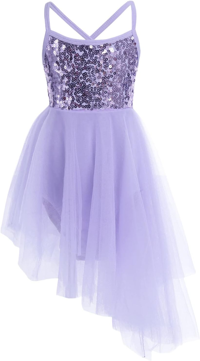TiaoBug Kids Girls Sequins Ballet Tutu Dress Shiny Sparkle Ballerina Dance Costumes Gymnastics Leotard Dress