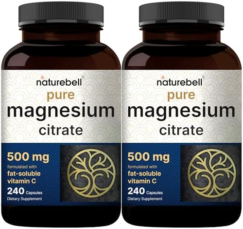 NatureBell Magnesium Citrate 500mg, 480 Cápsulas (2 Paquetes) | Forma Elemental de Alta Pureza | Apoyo para el Corazón, Músculos y Digestión | No OGM, Sin Gluten