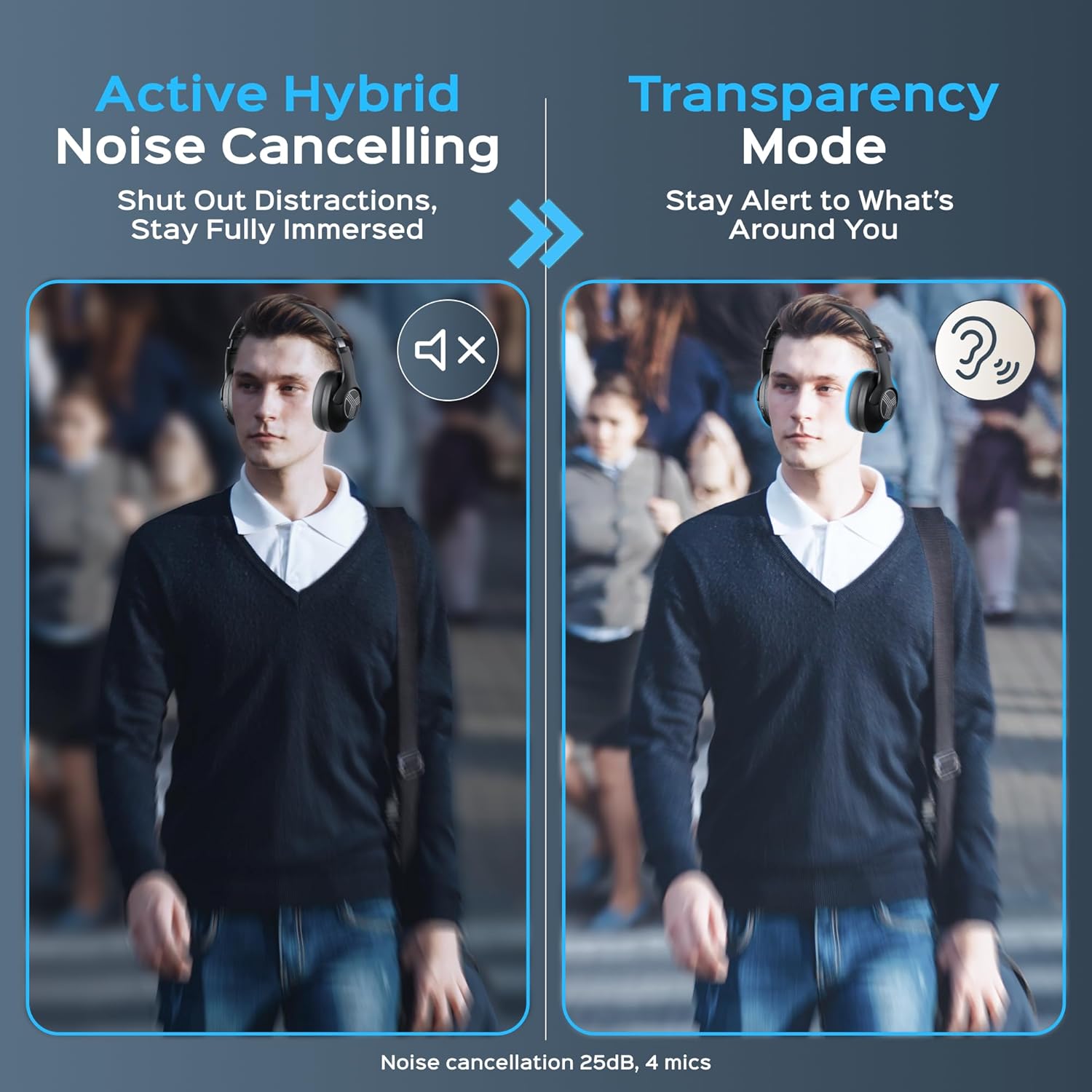Advanced Hybrid Active Noise Blocking – Z2-B Bluetooth over-ear headphones reduce distracting background noise with active feedback ANC (up to 19dB), helping you stay focused at the gym, on the go, or during travel.