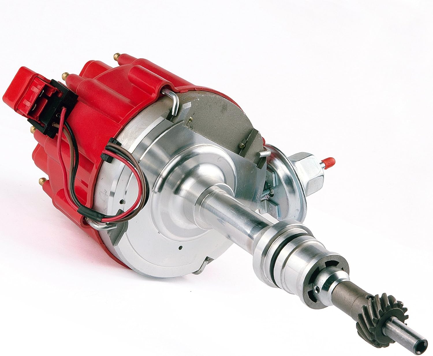 Distribuidor de encendido MAS con tapa roja HEI y bobina de 65K voltios para motores Ford SBF de bloque pequeño 221, 260, 289 y 302. Reemplazo para el número de pieza 1030213 y PE330U. Garantía limitada de un año. Compatible con piezas OEM y cumple con los estándares del Fabricante de Equipo Original (OEM).