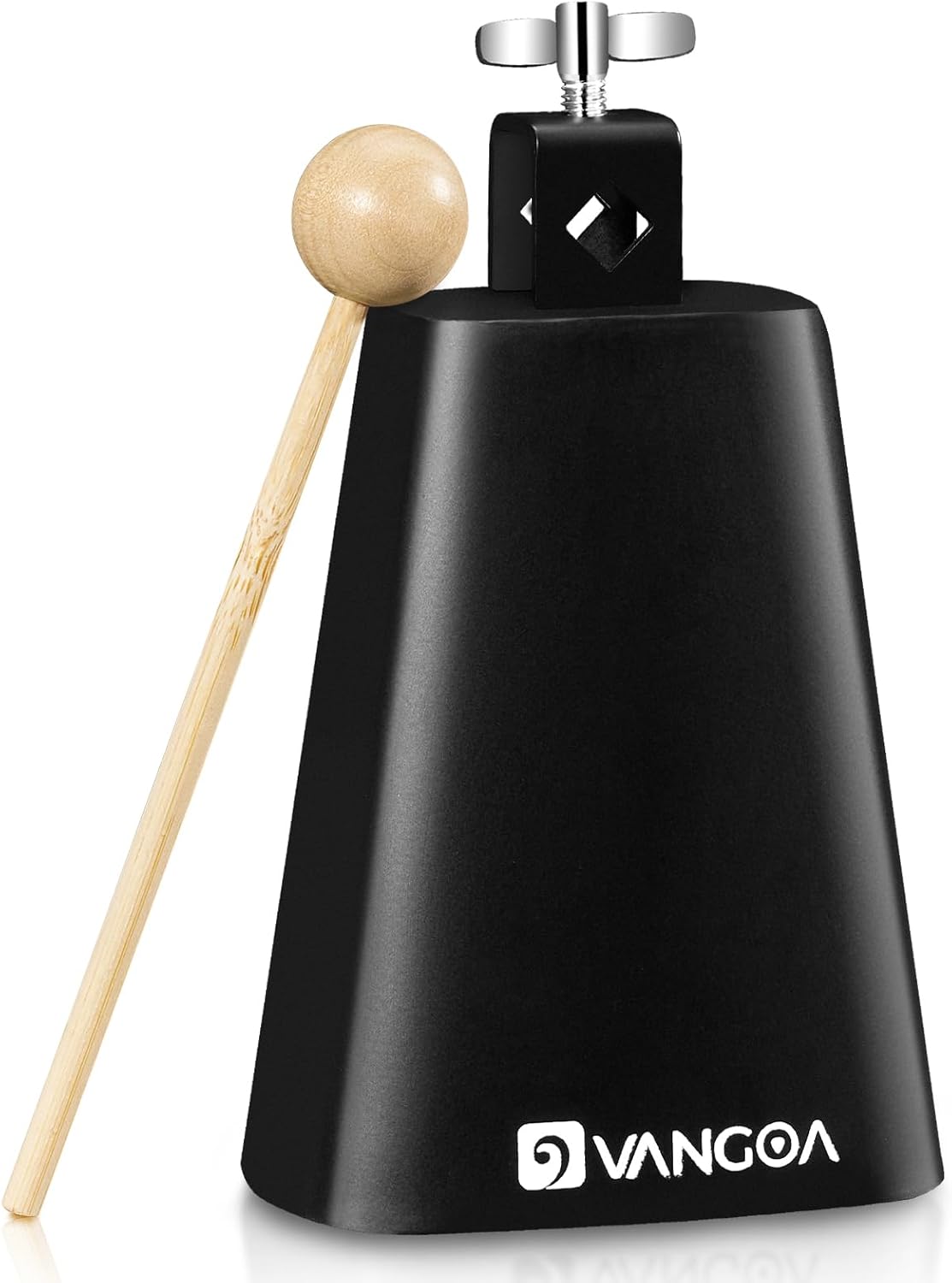 Vangoa 8 inch Metal Steel Cow Bell Noise Maker Cowbell Percussion Instrument with Handle Stick for Drumset Wedding Football Cheering Games