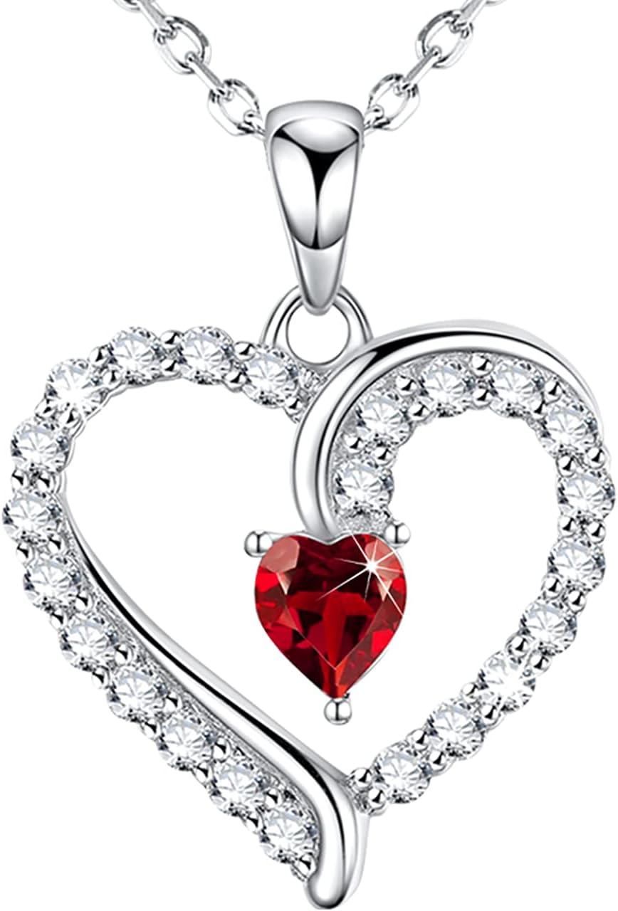 Garnet Necklace for Wife Mom Valentines Day Birthday Gifts Wife January Birrthstone Jewelry Women Sterling Silver Love Hearts Pendant Necklace