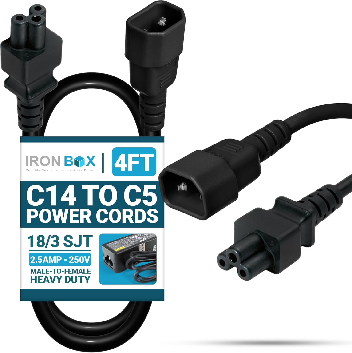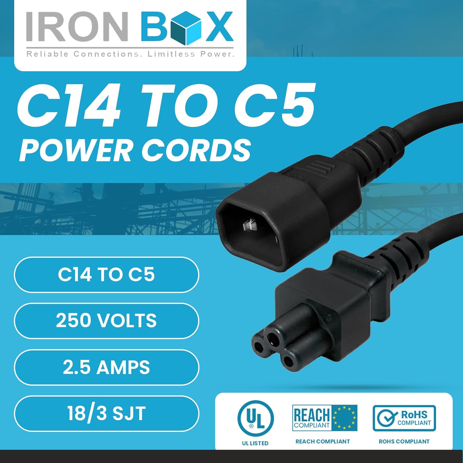 IronBox Electric C14 to C5 Power Cords - 2.5A, 250V, 18/3 SJT - UL Listed Power Extension Cable - Electrical Supply - Heavy Duty Plug and Connector for Computer, Monitor, Laptop, PDU and More (4 ft)