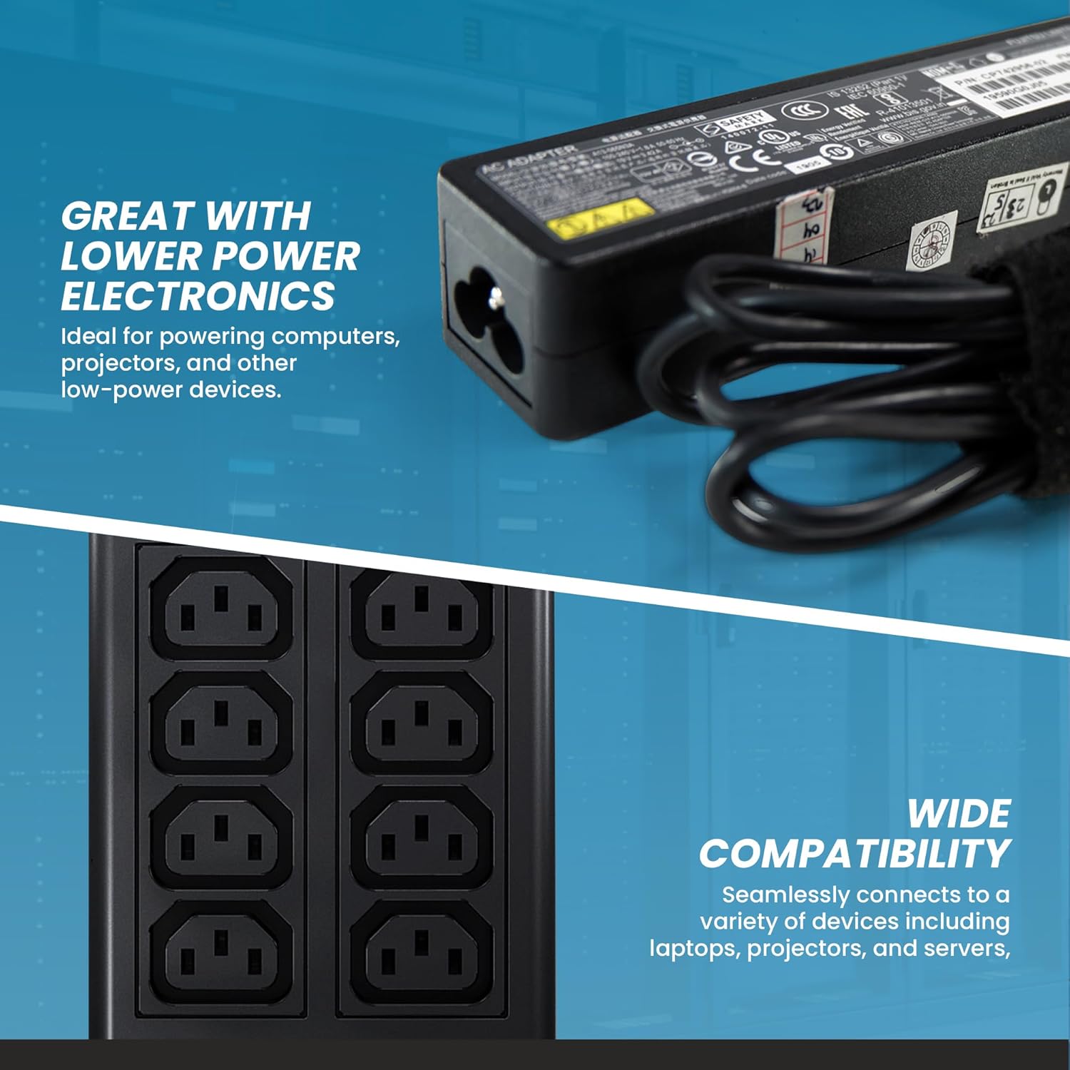 WIDE COMPATIBILITY: This C14 to C5 computer power cord is compatible with a variety of devices, including laptops, servers, projectors, and other equipment requiring a C5 connection. Its standard design connects seamlessly to C14 outlets on power strips, PDUs, and extension cords, offering flexibility for use in home, office, and industrial environments. The cable supports efficient power delivery for diverse applications in small businesses, government facilities, and personal setups.