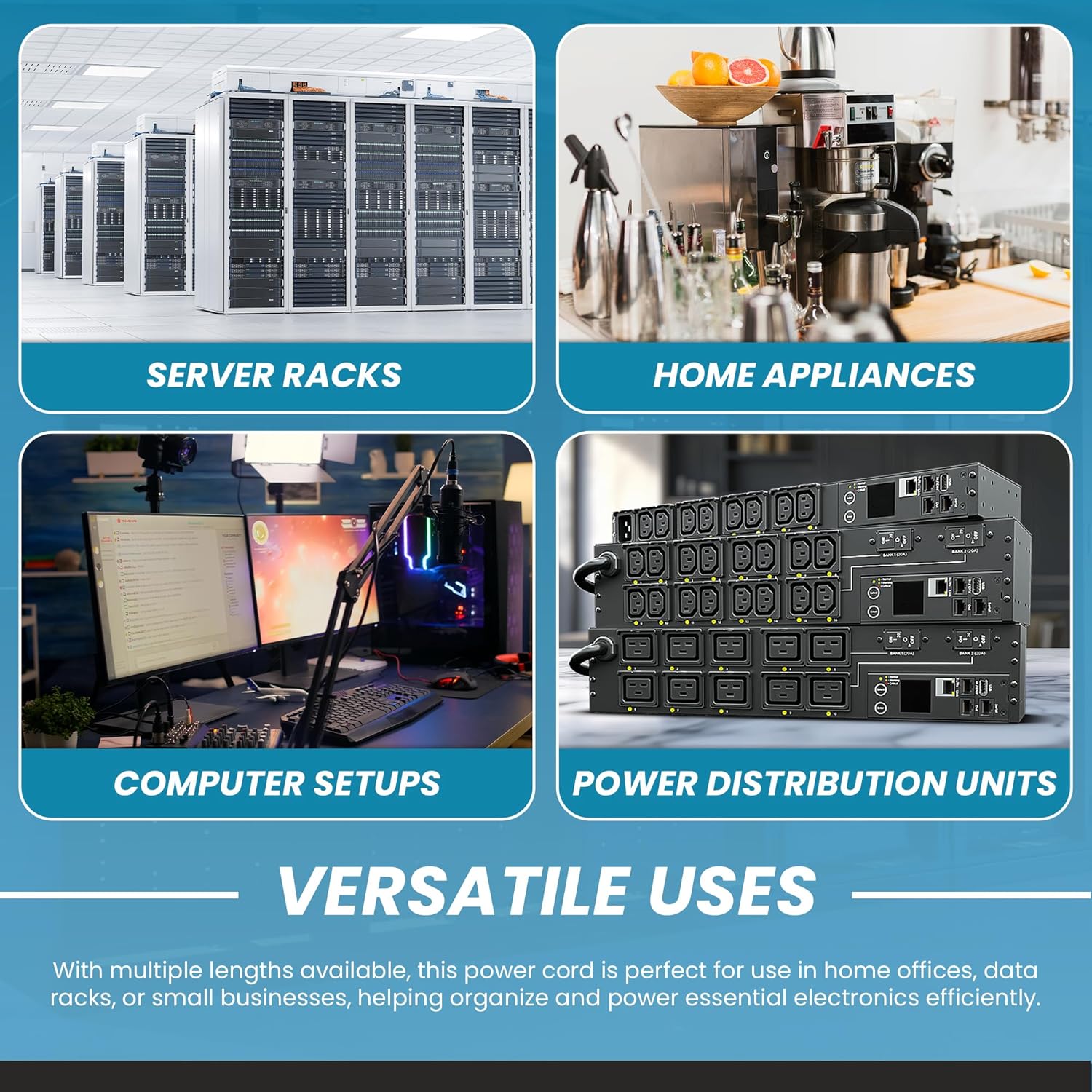 AVAILABLE IN VARIOUS LENGTHS FOR VERSATILITY: This C14 to C5 extension cord comes in multiple lengths, allowing you to select the size that fits your setup. Ideal for powering devices in data racks, workspaces, or home offices, it helps minimize clutter and maintain an organized layout. Perfect for connecting power strips, PDUs, or extension cords to electronic equipment, this cable offers flexibility for both compact and expansive environments.