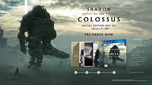Reconstruido desde cero por Bluepoint Games y JAPAN Studio, SHADOW OF THE COLOSSUS para PlayStation 4 presenta el asombro de su inolvidable mundo y sus imponentes criaturas a una nueva generación de jugadores, al tiempo que permite a los fanáticos veteranos volver a visitar la querida obra maestra con una fidelidad visual sin igual y un rendimiento mejorado. Los cuentos hablan de un reino antiguo en el que los colosos deambulan por el majestuoso paisaje. Estas criaturas, ligadas a la tierra, tienen la llave de un místico poder de renacimiento, un poder que debes obtener para devolverle la vida a un ser querido. La caja de edición especial de SHADOW OF THE COLOSSUS incluye el juego en un impresionante estuche de acero, postales de artista, manual de instrucciones impreso, mapa del mundo físico, extras del juego (como Ancient Bow, Cloak of Fate y un diseño especial para Agro), set de avatares, temas dinámicos y mucho más.