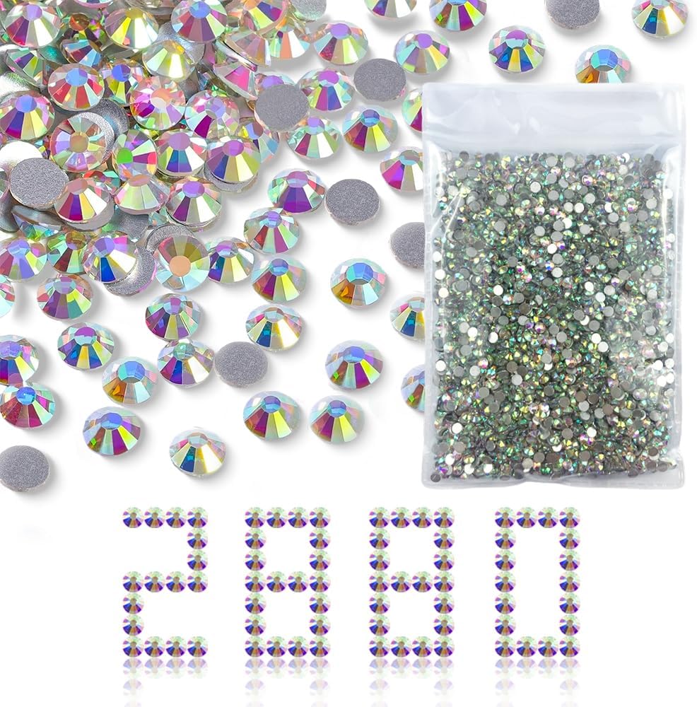 Flatback Glass Crystals Rhinestones for Nails AB Gems Stones Beads Nail Art Rhinestones for Decoration Accessories Crafts Eye Makeup Clothes Shoes (SS12)