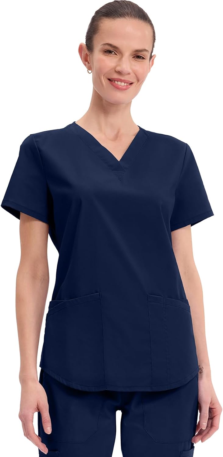 Cherokee Scrubs for Women V-Neck Top, 3 Pockets, Fade Resistant, Soft Stretch Fabric with Shirttail Hem & Side Vents - WW665