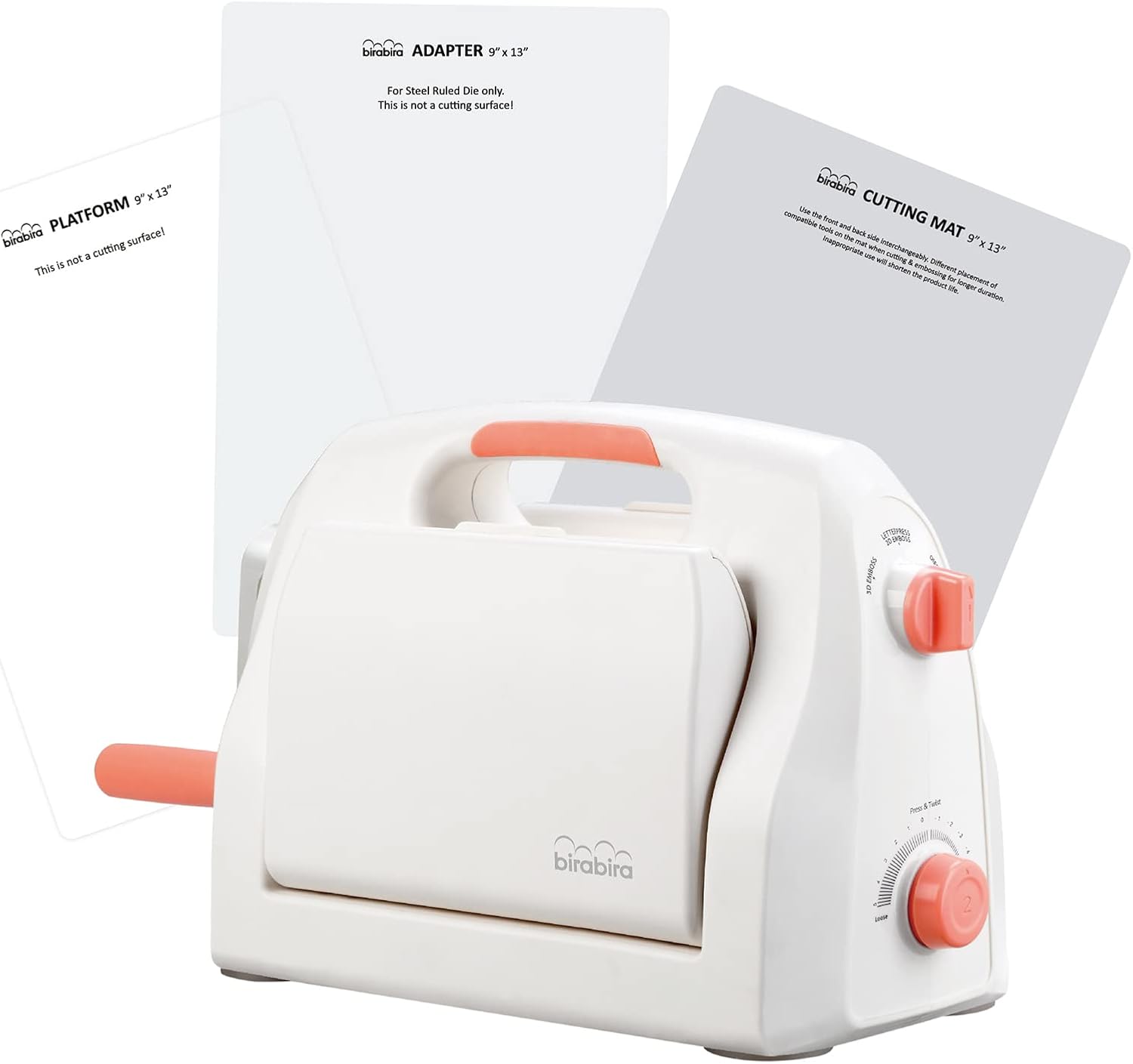 Descripción: Funciona con el juego de cuatro placas magnéticas Bira de 6 pulgadas. El mango está en uno de los compartimentos laterales. Configuración para la matriz grabada: Gira el botón superior para cortar la matriz, el botón inferior para el medio, Plataforma + Material + Tapete de corte. Configuración para relieve 2D: Gira el botón superior para relieve 2D, el botón inferior para el medio, Plataforma + carpeta de relieve 2D + Tapete de corte. Configuración para la matriz de regla de acero: Gira el superior para cortar la matriz, el botón inferior para ajuste ajustado, Matriz de regla de acero + Material + Tapete de corte. Configuración para la carpeta de relieve 3D: Gira el botón superior para 3D, el botón inferior para ajuste ajustado, Plataforma + carpeta de relieve 3D (5.75 mm). Configuración para el juego de placas magnéticas en la máquina Bira ajustable de 6 y 9 pulgadas: Die: Gira el botón superior para la matriz, el botón inferior para suelto, la alfombrilla magnética se engancha con la plataforma + papel + matriz + placa b. Relieve 2D: Gira el botón superior para relieve 2D, el botón inferior para suelto, la alfombrilla magnética se engancha con la plataforma + carpeta de relieve + placa b. Incluye: 1 Máquina 1 Plataforma 1 Tapete de corte 1 Adaptador