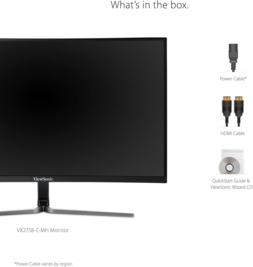 ViewSonic VX2758-C-MH Monitor de juegos curvo de 27 pulgadas 1080p 144Hz con FreeSync Premium Eye Care HDMI y VGA