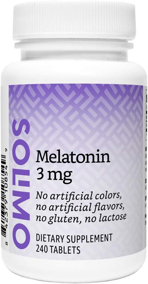 Amazon Brand - Solimo Melatonin 3mg Tablets, Eight Month Supply, Helps with occasional sleeplessness, 240 Count