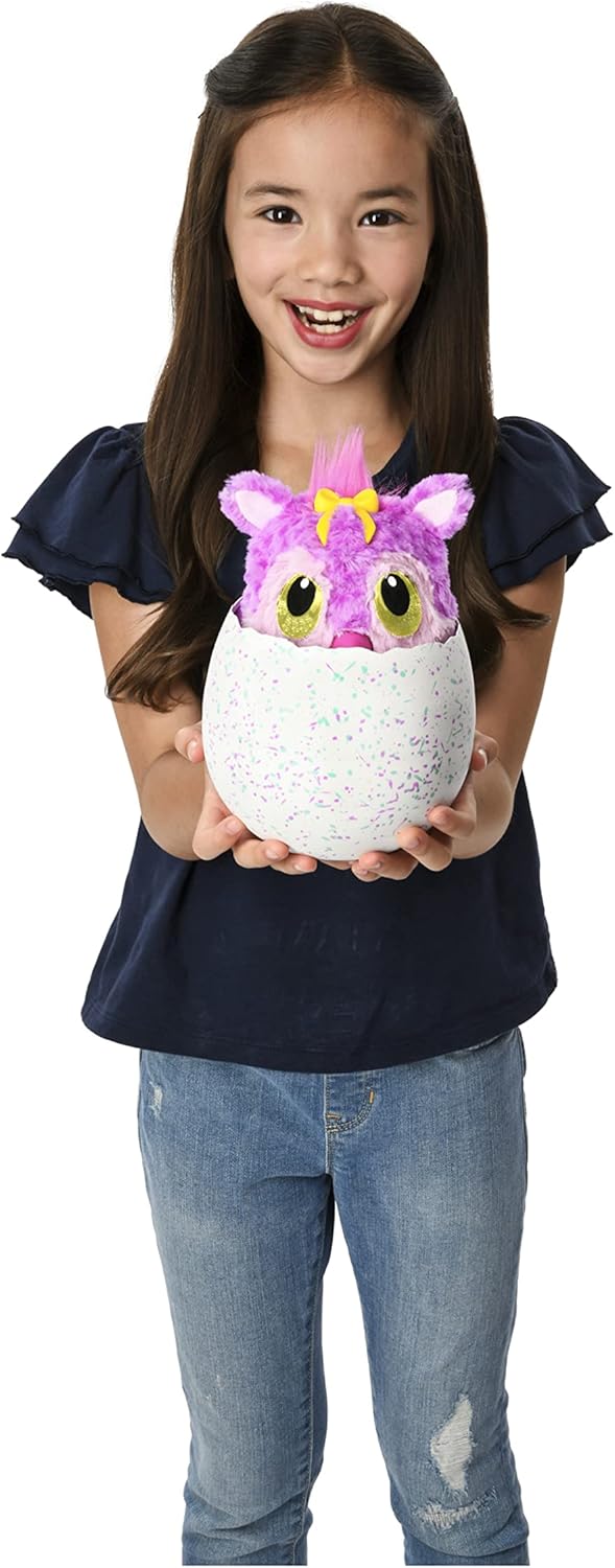 ¡Han llegado los HatchiBabies y tienen muchísimas sorpresas para ti! ¡Por primera vez en la historia, podrías dar a luz a un niño o una niña! Para saber quién está dentro del huevo de tu HatchiBaby, abrázalo, dale golpecitos y dale palmaditas. Cuando te escuchen, ¡responderán con sonidos lindos! ¡Cuanto más juegues con estos bebés eternos, más EggCited recibirán! Coloca el huevo sobre una mesa y ¡se balanceará de un lado a otro! Cuando veas los ojos del arcoíris brillar a través de la cáscara, sabrás que tu HatchiBaby está listo para salir del cascarón, ¡pero no podrá hacerlo sin ti! Frota el huevo para estimularlos y retira la cáscara. ¡El mensaje secreto que contiene revelará si has nacido un hatchiboy o una hatchigirl! (¡No olvides rellenar el certificado de nacimiento!) Cuando saques tu HatchiBaby, sus grandes ojos que cambian de color te dirán cómo se sienten, sus picos se moverán y se mecerán hacia adelante y hacia atrás: ¡cobran vida de verdad! ¡Ahora puedes meter la mano en la carcasa, levantar la trona y despegarla para ver un sonajero, una botella, un cepillo para el pelo, un compañero de abrazos y una bellota interactiva exclusiva! ¡Úsalas para alimentar, eructar, hacerle cosquillas y abrazar a tu bebé! ¡Incluso puedes usar tu bellota exclusiva para desbloquear el juego Chipadee Chatter! ¡Habla con tu Chipadee y ellos hablarán contigo! ¡Es como si estuvieras teniendo una conversación infantil! Lo mejor es que ¡estos Hatchimals seguirán siendo bebés para siempre! Con ojos grandes y colas esponjosas, ¡los HatchiBabies de Chipadee están llenos de sorpresas por descubrir! ¡Llévate a casa tu propio HatchiBaby! JUGUETE CON LA LISTA DE DESEOS: ¡Regálale a tu hijo este regalo de la lista de deseos para niños y niñas de 5 años o más! ¡Este peluche interactivo es un regalo perfecto para tu hijo, nieta, nieto o cualquier persona en tu vida que quiera cuidar de una adorable mascota interactiva!