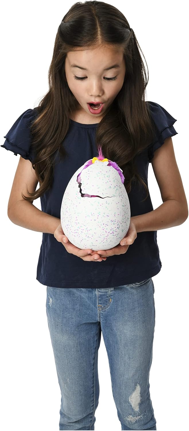 ACCESORIOS DIVERTIDOS: cuando tu HatchiBaby nazca, mete la mano en el huevo para pelarlo y ver una trona, además de 4 accesorios ocultos: un sonajero, un cepillo para el pelo, un biberón y un compañero de abrazos. Alimenta, eructa, hazle cosquillas y abraza a tu HatchiBaby, ¡y responderá como un bebé de verdad!