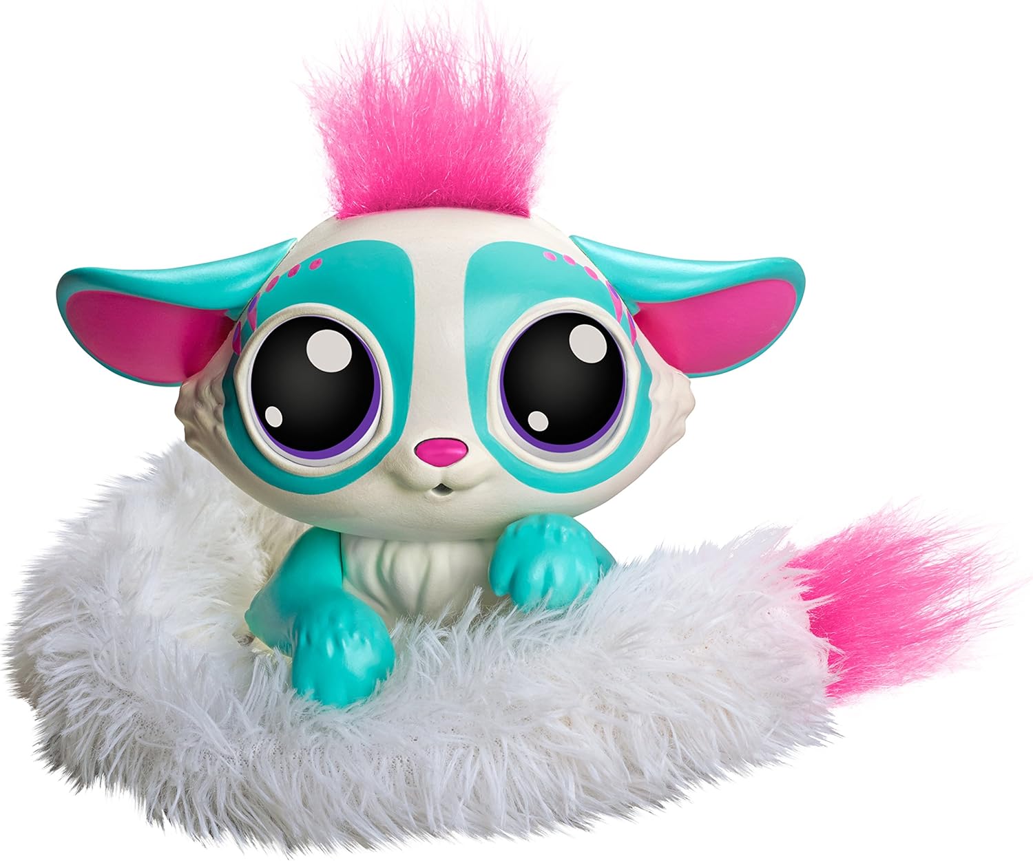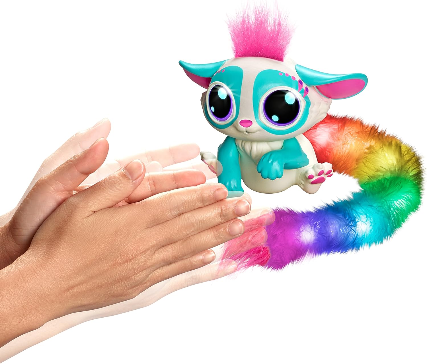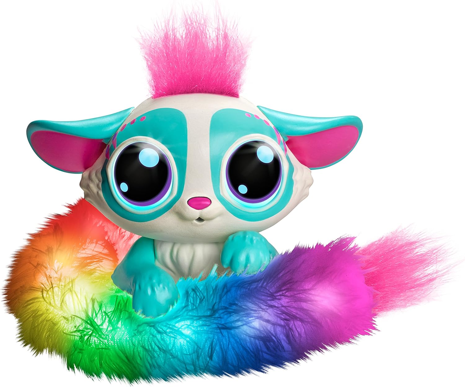 Meet the Lil' Gleemerz -the adorable fun-makers with rainbow light-up tails and quirky sounds and phrases! The  Lil' Gleemerz are lighting up kids' lives with fun and Friendship that positively glows! Amiglow is bright teal with big, glowing eyes and a furry LED light-up tail. This interactive furry friend responds to touch and sound with over 100 reactions to discover. Simply press the nose for three ways to play -in hangout, light party, or game mode! In hangout mode, pet and pinch Amiglow for purrs, growls, jokes, funny phrases, and more. In light party mode, clap or play music and its eyes and tail will flash to the beat for a dazzling light show. In game mode, play three different games with Amiglow (Catch the Kiss, Tail Tennis, and Stop on the Spot) with the traveling lights in its glowing tail! Lil' Gleemerz are also available in a variety of bright colors. Collect them all for even more bright and curious adventures, because the Lil' Gleemerz can't wait to meet you!