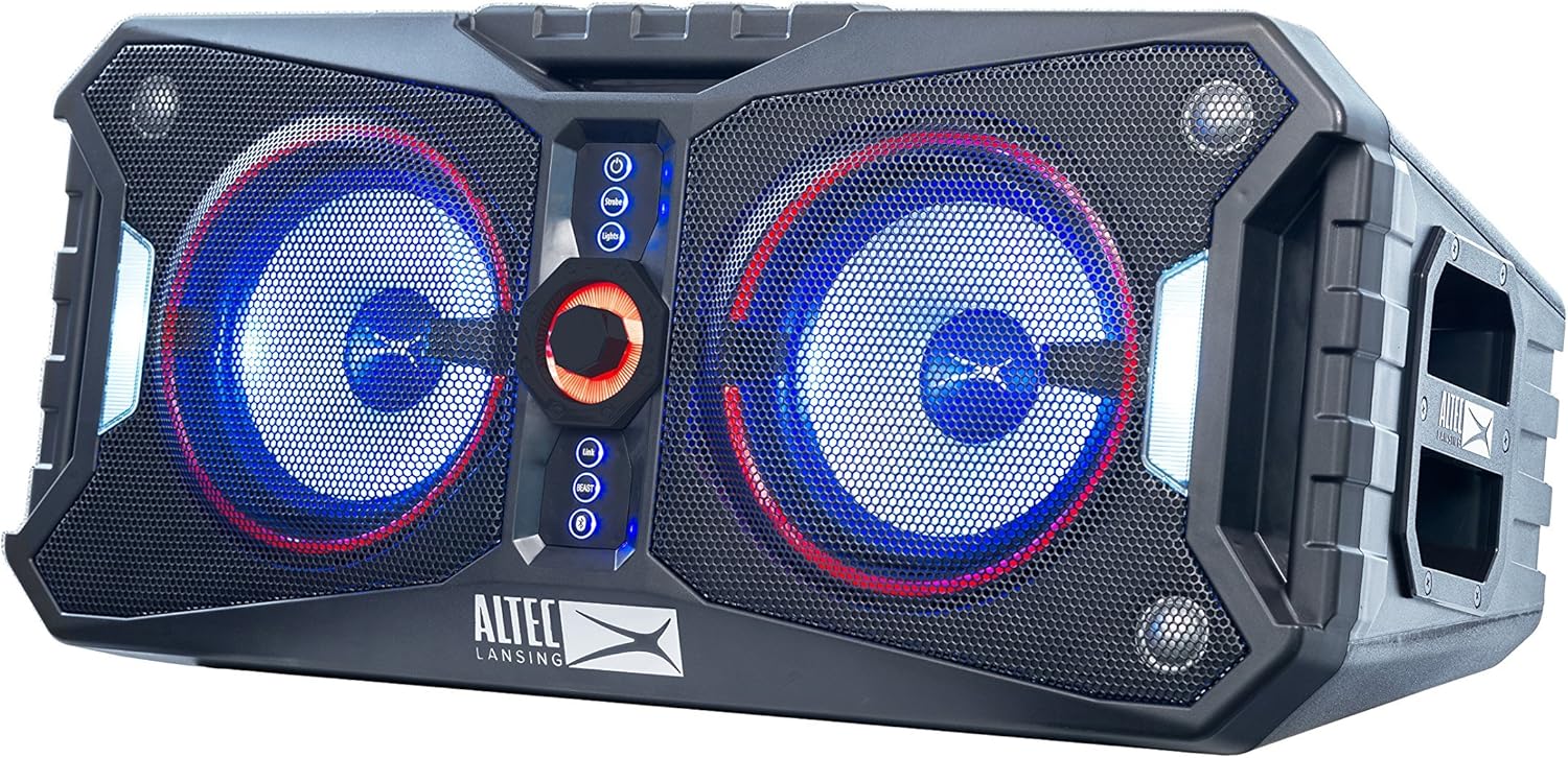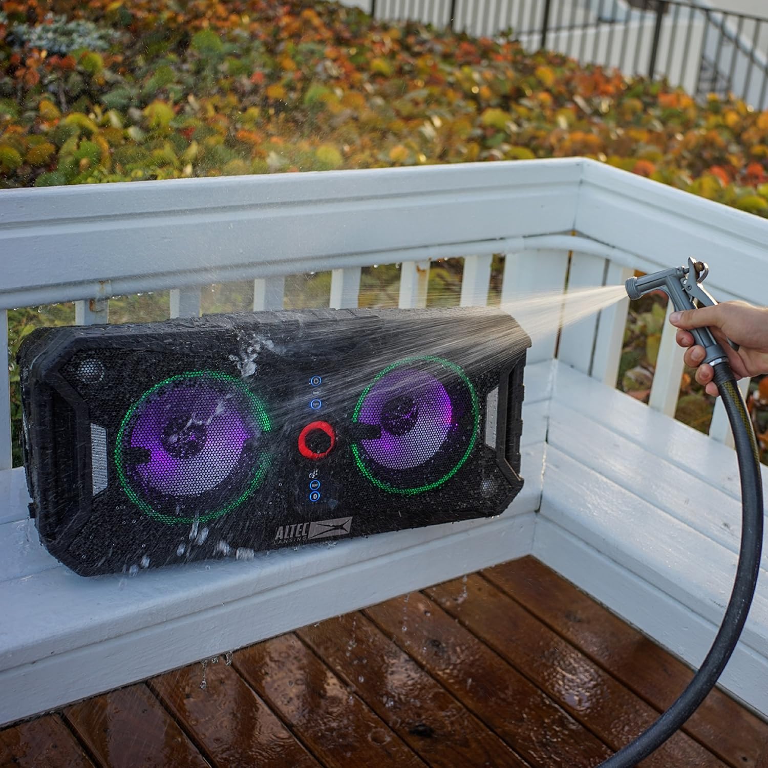 Altec Lansing ALP-XP800 Xpedition 8 Altavoz portátil inalámbrico Bluetooth impermeable para interiores o exteriores con espectáculo de luces LED multicolor, emparejamiento estéreo, todo a prueba