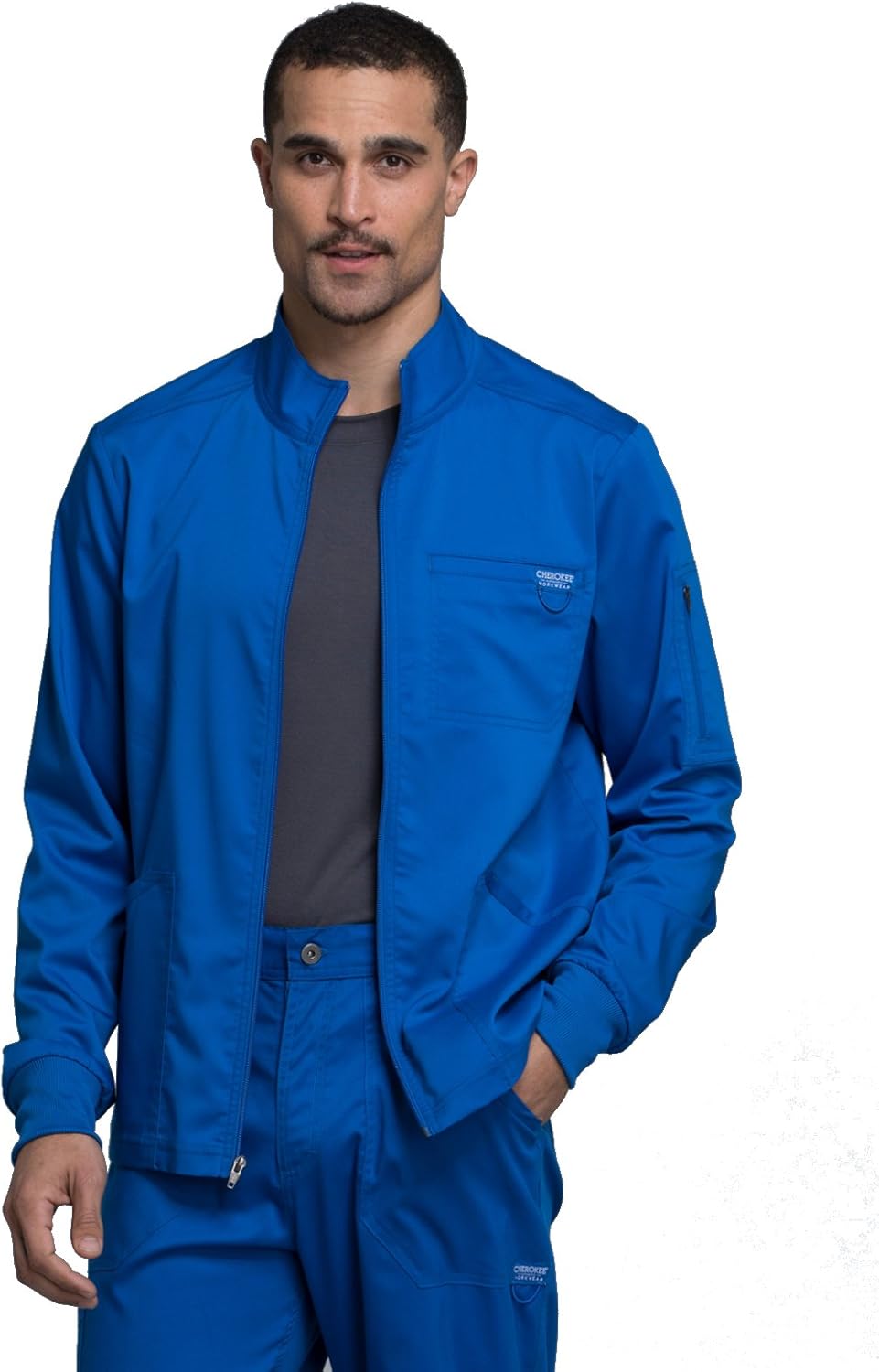 Cherokee Scrub Jacket Men's Zip Front Jacket with 5 Pockets, Bungee Loop, Rib-Knit Cuffs, Soft 2-Way Stretch Fabric - WW320