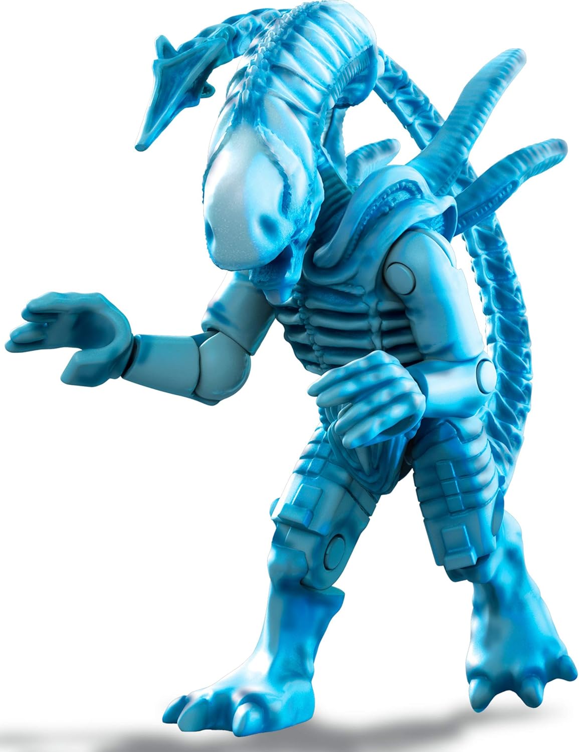 No one can hear you scream with this collectible Xenomorph figure! Expose yourself to the parasitic super predator and build the terror with a collectible Xenomorph micro action figure inspired by the world of Aliens. With deluxe detail and premium printed decoration, this super-poseable figure features skull, tail, and dorsal tubes – and a new transparent blue look. It comes with a buildable stand with printed name detail for the ultimate display. Build and collect all 6 in the series! Ideal for ages 10 and up