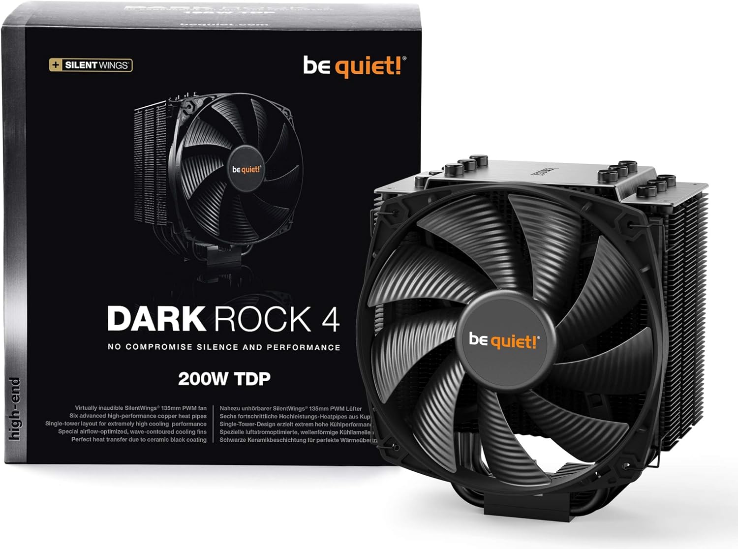 Dark Rock 4 ofrece un rendimiento de refrigeración extremo y un funcionamiento prácticamente inaudible. Perfecto para sistemas overclockeados y estaciones de trabajo exigentes. El ventilador Silent Wings PWN de 135 mm cuenta con un rodamiento dinámico de fluidos avanzado y un motor suave de 6 polos, equilibrio óptimo de refrigeración y silencio con solo 21,4 Db (a) a la velocidad máxima del ventilador, seis tubos de calor de cobre de alto rendimiento que proporcionan el máximo calor Aletas de enfriamiento con contorno de onda conductiva para una mayor circulación de aire; el revestimiento negro especial con partículas de cerámica permite una transferencia de calor perfecta; admite un ventilador adicional de 120 mm; se incluyen clips en el volumen de suministro; se puede instalar fácilmente El kit de instalación negro se puede montar desde arribaelegante tapa de aluminio cepillado cubierta con acabado de corte diamantado Fabricante de 3 años. br>concepción del producto, diseño y control de calidad en alemania ▪ Intel: LGA 1150/ 1151/ 1155/ 1156/ 1366/ 2011 (-3) square iLO/ 2066 ▪ AMD: AM2 (+)/AM3 (+)/AM4/ FM1/ FM2 (+)