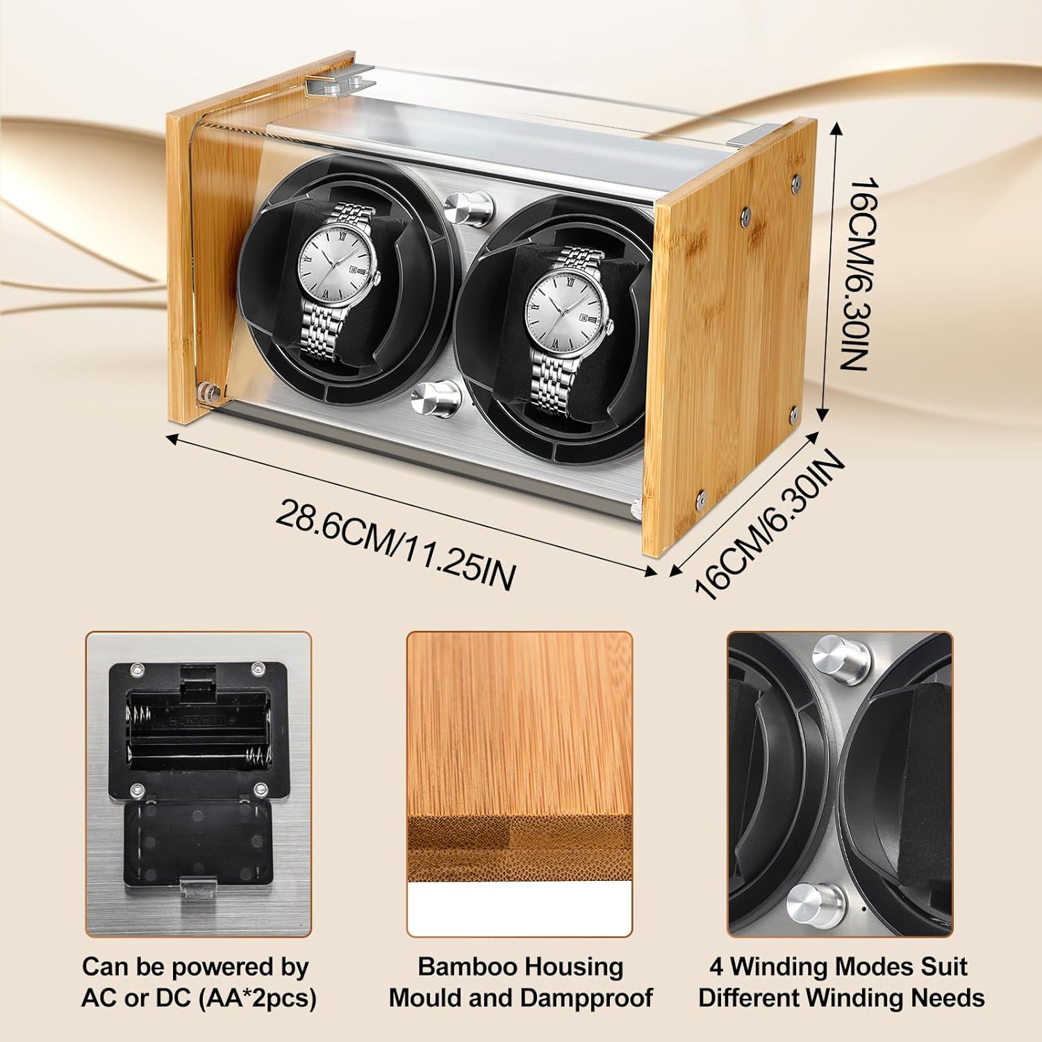 Handcrafted for Discerning Collectors​: Real bamboo housing Watch winders for automatic watches with protective chambers​