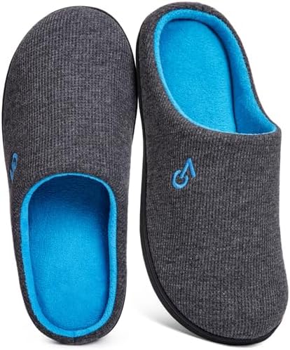 VeraCosy Men's Two-Tone Memory Foam House Slippers Indoor Outdoor Durable Rubber Sole