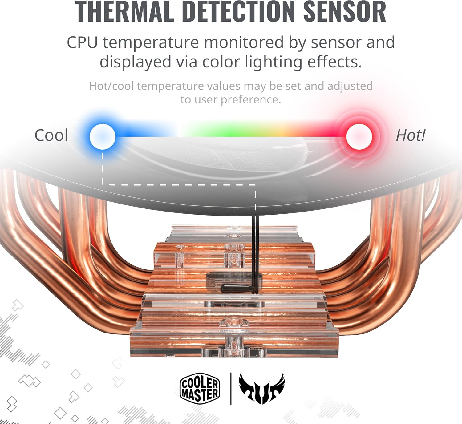 Sensor de detección térmica: temperatura de la CPU monitoreada por el sensor y mostrada a través de efectos de iluminación en color