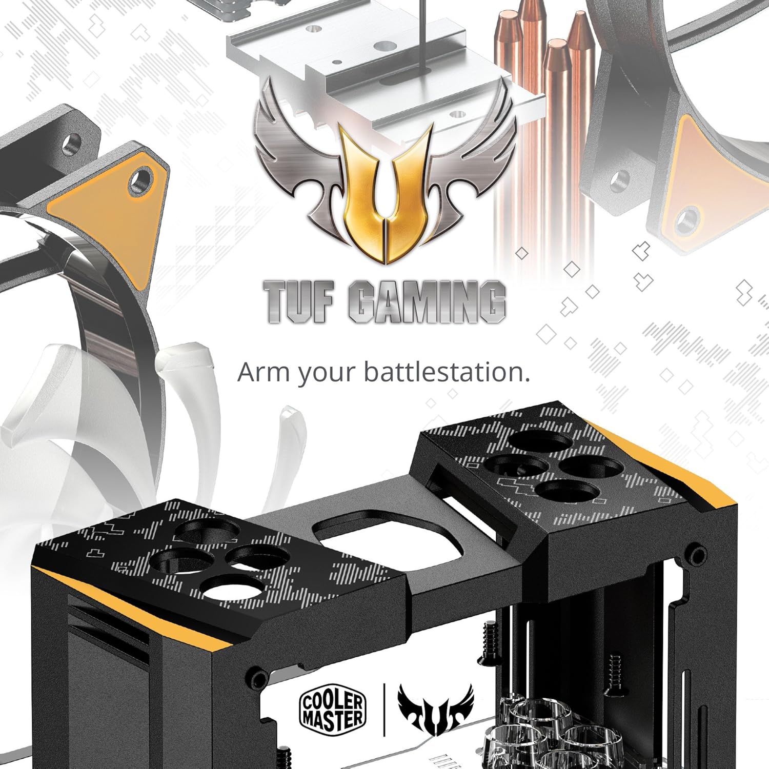 Refrigerador de aire Cooler Master Master Air MA410M TUF Gaming Edition para CPU RGB direccionable con TUF Camo, 4 tubos de calor 2.0 de contacto directo continuo, push-Pull, ventiladores duales MF120R de 120 mm, AMD Ryzen/Intel1151