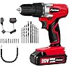 AVID POWER 20V MAX Juego de taladro inalámbrico de litio de iones de 20V, Kit de taladro eléctrico con batería y cargador, mandril sin llave de 3/8 pulgadas, velocidad variable, 16 posiciones y 22 piezas de brocas (Rojo)