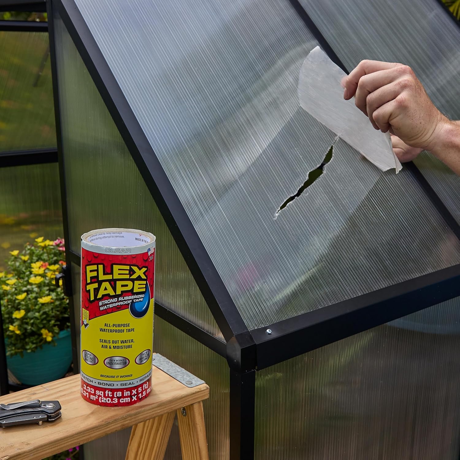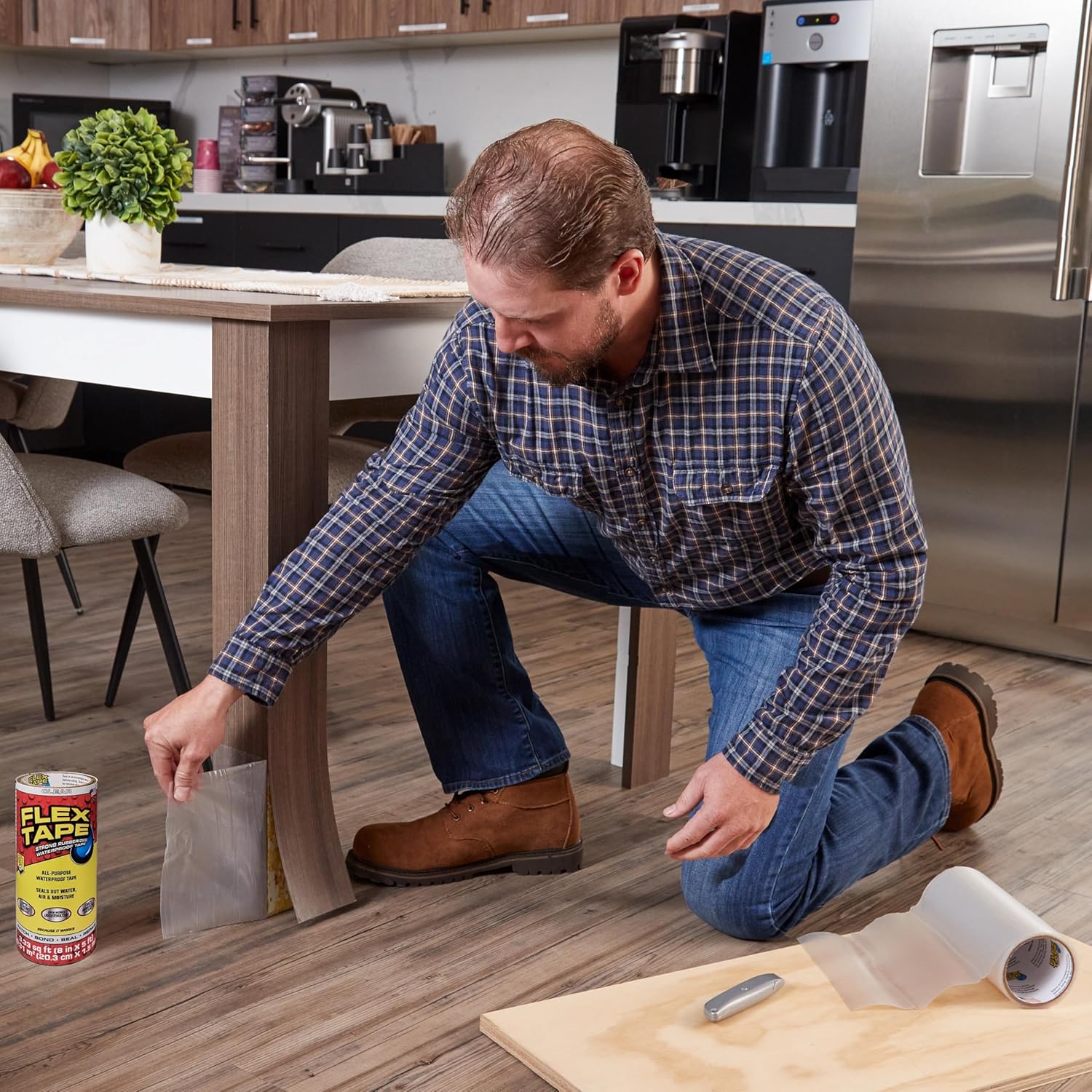 Flex Tape, Cinta Original Resistente y Flexible de Caucho Hidro resistente - Sella y Repara Fugas, Funciona Bajo el Agua, Interior y Exterior - Reparaciones para Techos, Plomería y Piscinas de Hogar y RV, Transparente, 8 in x 5 ft, Paquete de 1