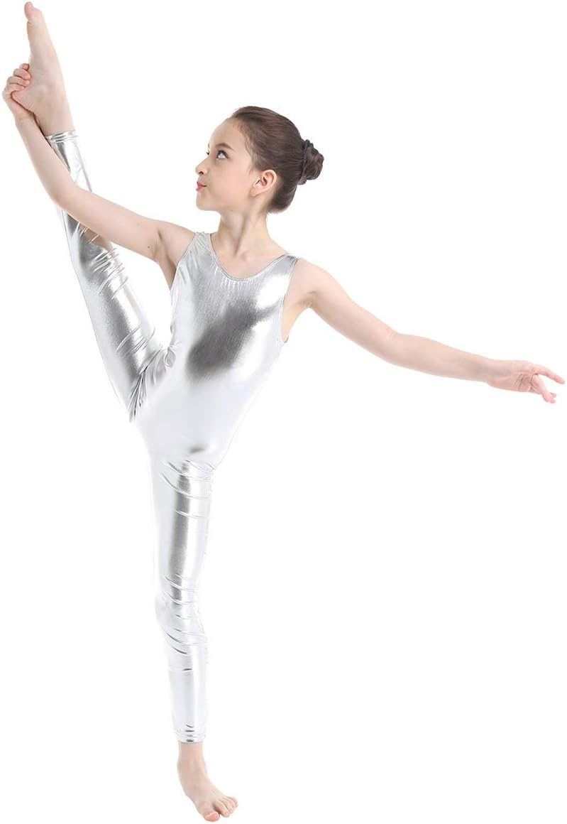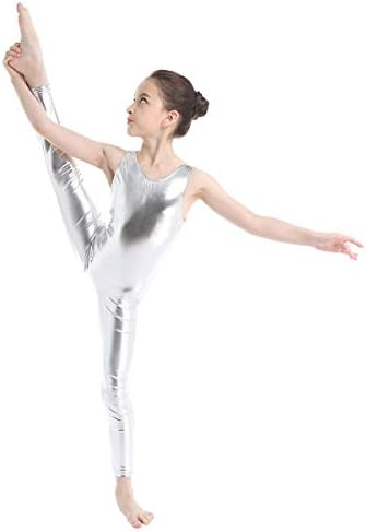 TiaoBug Kid's Metallic Sleeveless/Long Sleeve Full Bodysuit Unitard Gymnastics Leotard Spandex Bodysuit Dancewear