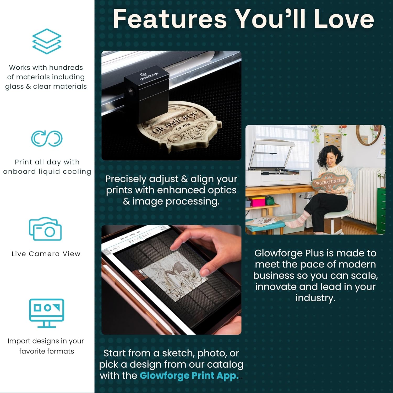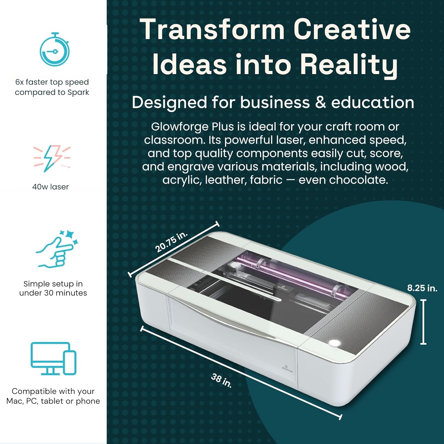 Impresora láser 3D Glowforge Plus: la herramienta rápida, fácil y potente para madera, cuero, manualidades, papel, tela y bricolaje. La mejor máquina de corte y grabado láser para pasatiempos